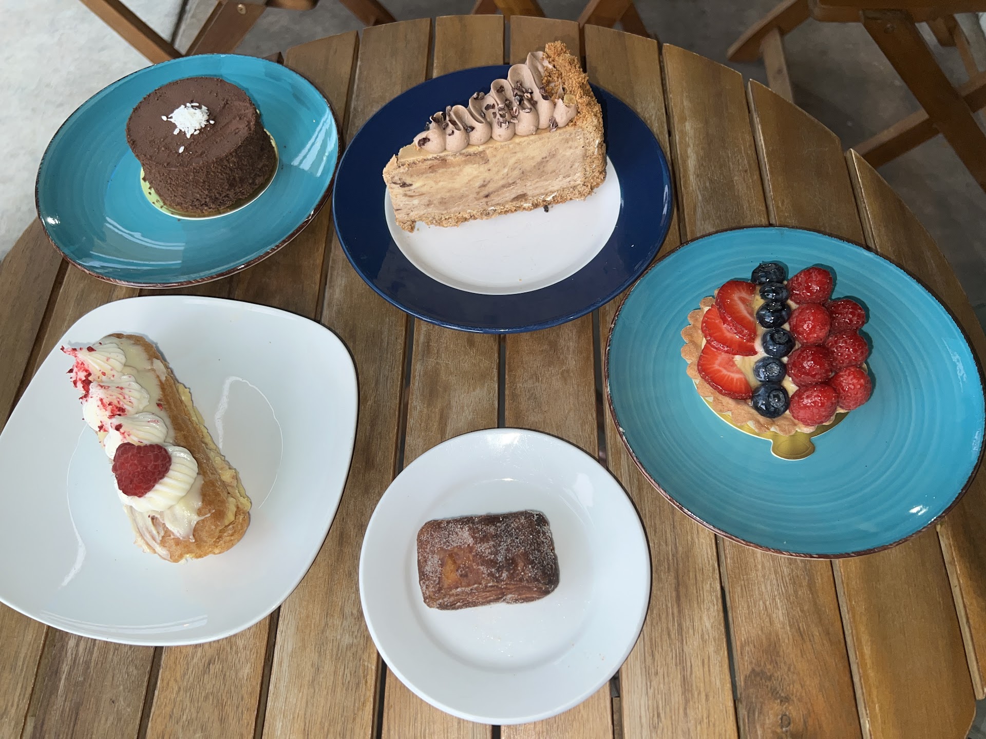 Pastries ordered Eclair Chocolate Mousse Cake Peanut Nutella Cheesecake Fruit Tart Beignet