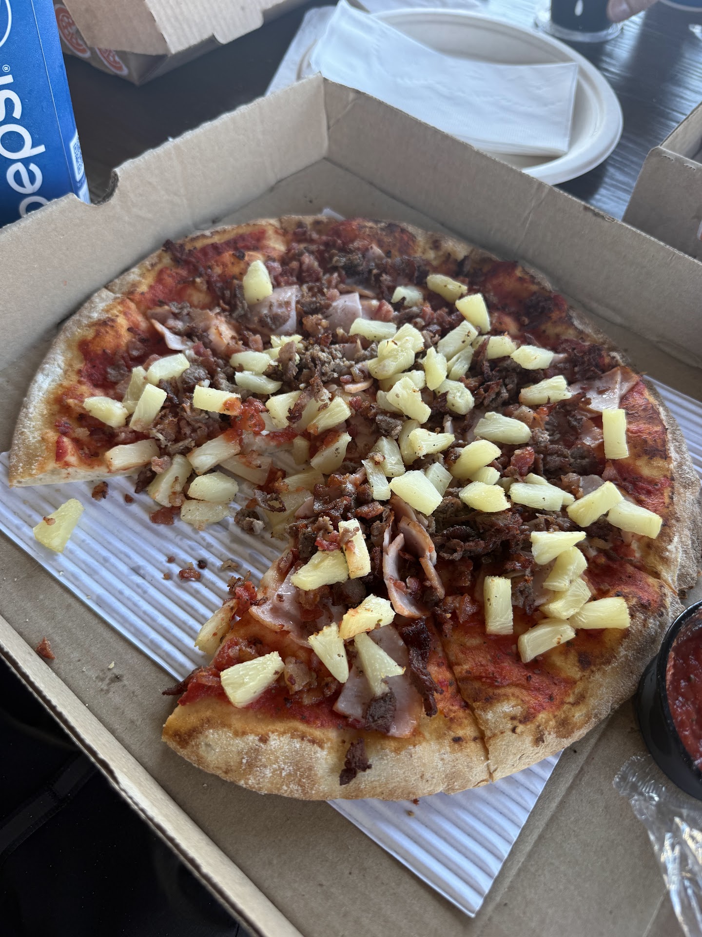 I’m okay with the manager being rude, as long as he’s flipping a stretched crust over his head while doing so, not acting like the king of high school. I’m not okay with a projection of self entitled quality, that was followed up with beyond subpar flavors, construction and presentation. I understand why they don’t sell by the slice, this “pizza” wouldn’t work well reheated with how thick and poorly assembled it is.