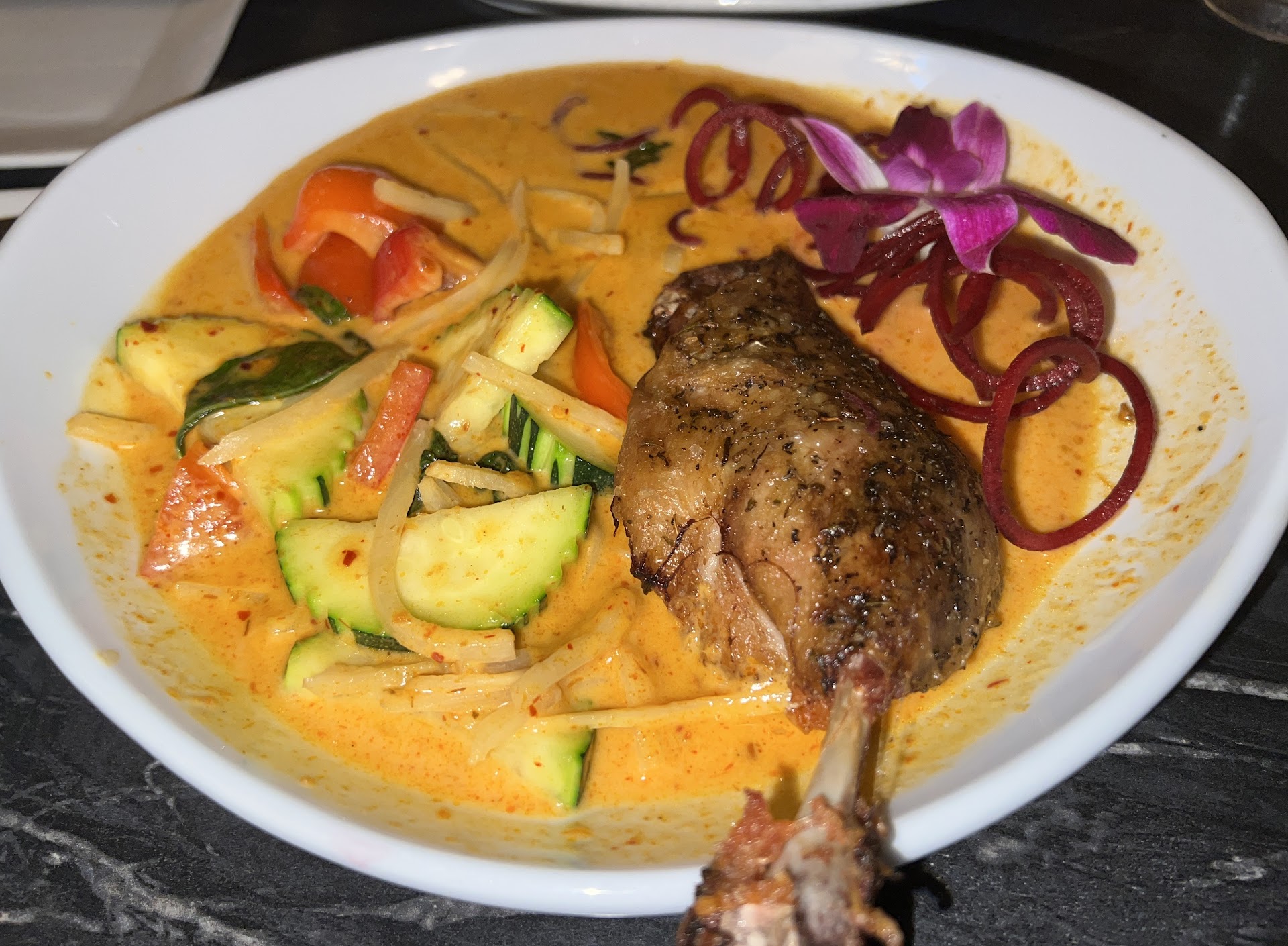 Entrees Drunken Noodles - excellent! Red Curry with Duck Leg - this was totally outstanding! One of the best Thai red curry I ever had. The duck was made to perfection and though the dish was packed with ingredients there was generous amount of curry sauce itself. The only suggestion I would make is to replace zucchini with an eggplant. Zucchini were good, but eggplants I tried from my wife's Green curry were even better :) Green Curry with Chicken - delicious and perfectly made! Fried Chicken - fresh and juicy. Our 9y old loved it, making...