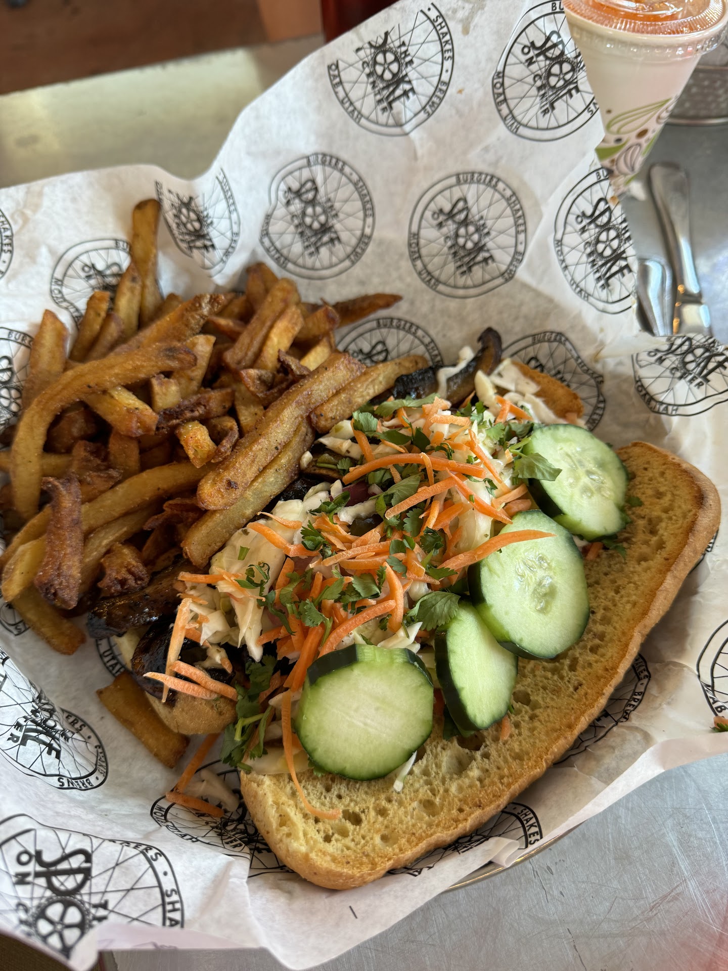 All we wanted were some drinks and an appetizer after a long morning/afternoon of hiking in Arches NP and we were sorely disappointed. The server brought the wrong beer to my boyfriend and almost charged him for it! He also messed up our order which was JUST loaded french fries. We waited about 30 minutes for them to bring the order, which still wasn’t totally correct but whatever. We ate it and it was fine.