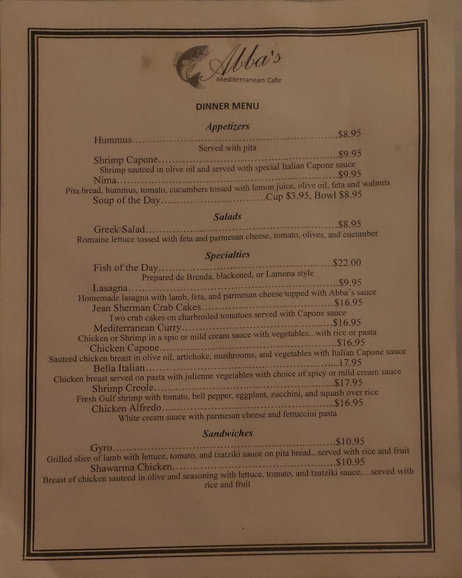 Read moreI met Abba without knowing of this establishment and he was so nice and personable that I had to check it out when he told me of it. Boy am I glad I did! This is absolutely fine dining at an extremely affordable price. The ambience inside is incredibly nice and our waiter was great. Abba came and spoke to us and every other customer that came in to say hello and explain the specials. Both me and my girlfriend got the lamb special and it was by far the best meal I've had all year. My girlfriend (who is greek) said the baklava is the best that she's had in this city. Best Mediterranean...