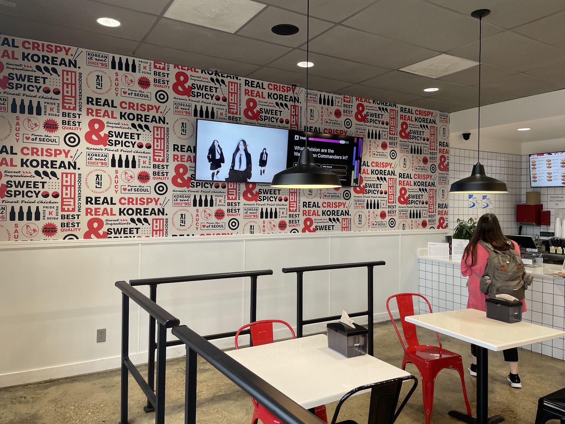 There were several TVs on mute throughout the restaurant playing Korean-themed music videos. There was a playlist of mostly Korean music playing through the speakers. One TV had a trivia game that could be joined by phone which is a nice touch. I liked the atmosphere overall, though I feel it could be a little darker.