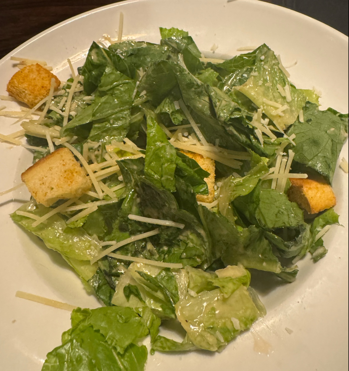 On the sides, my potato was warm but not hot, while my guestâs was served cold. The spinach and artichoke dip was fine but nothing special. The salad had almost no dressing, making it dry and bland.