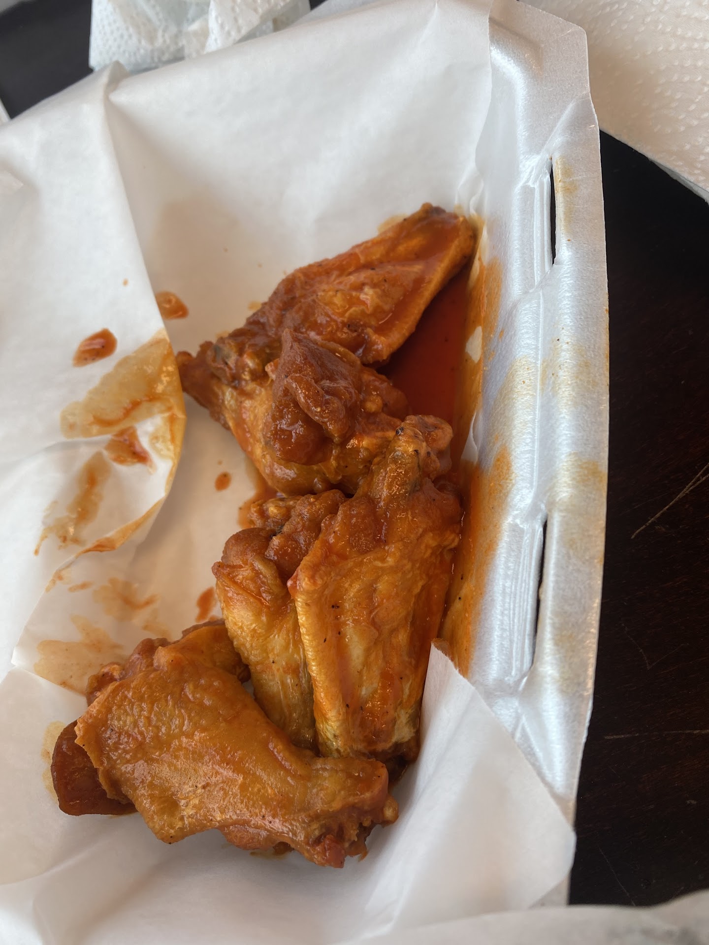 Ordered some wings and my mom my son and I tore those wings up all the way to Florida they were fried and seasoned to perfection and we'll definitely stop back through there on our way back to Texas...