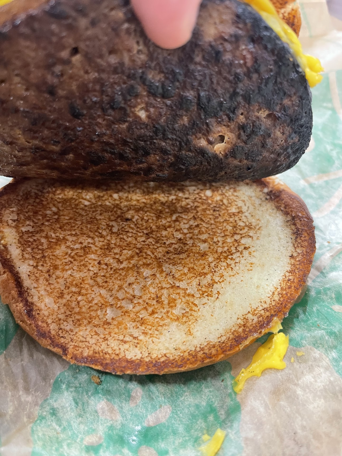 Then, when I open my sandwich there's something wrong with the bun (see attached photo).