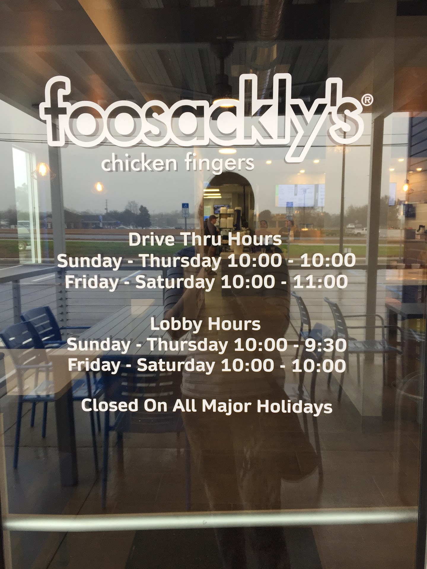 Read moreFirst time visiting Foosackly’s. I was just expecting fast food chicken fingers but was pleasantly surprised at the experience at this establishment. I was greeted by Joseph “an oler slower guy” to use his words (he’s probably younger than I am). I wasn’t sure what to order since this was my first time. He picked up on that and offered all the sauces to go along with my chicken fingers order so that I could get a flavor of what they offered. Souther hospitality at its best.