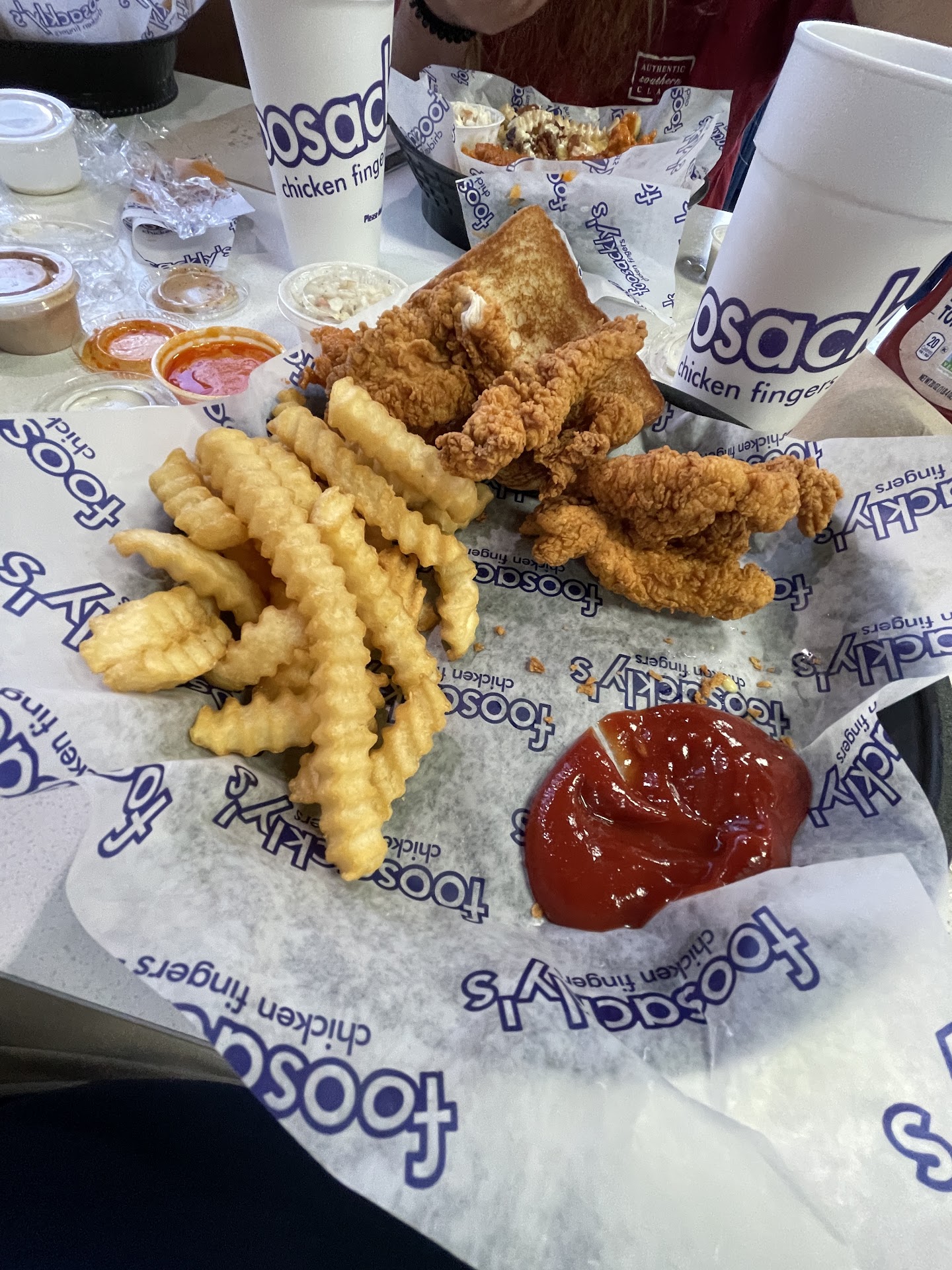 Read moreOkay a $33 order at the drive-thru the bigger boxes and then the queso fries with bacon bits three large drinks. A guy came out and took the order before we got to the window ask for a name and he even repeated the order back to us correctly the first time. Went to the window paid for everything pulled over into a parking spot and check the order. There was to be coleslaw substituted for an extra bread and the sauce was to be ketchup ...no substitution for the bread and no ketchup ..(I think they call it honey mustard is what they stuck in it) not sure what happened between the guy repeating back exactly what we asked for and what we got at the window. Food was hot fresh and not sloppily thrown in the containers. I walked back in explained the situation to the lady at the counter she immediately took care of the issue and corrected it in a timely manner ..The employees were friendly and very low drive...