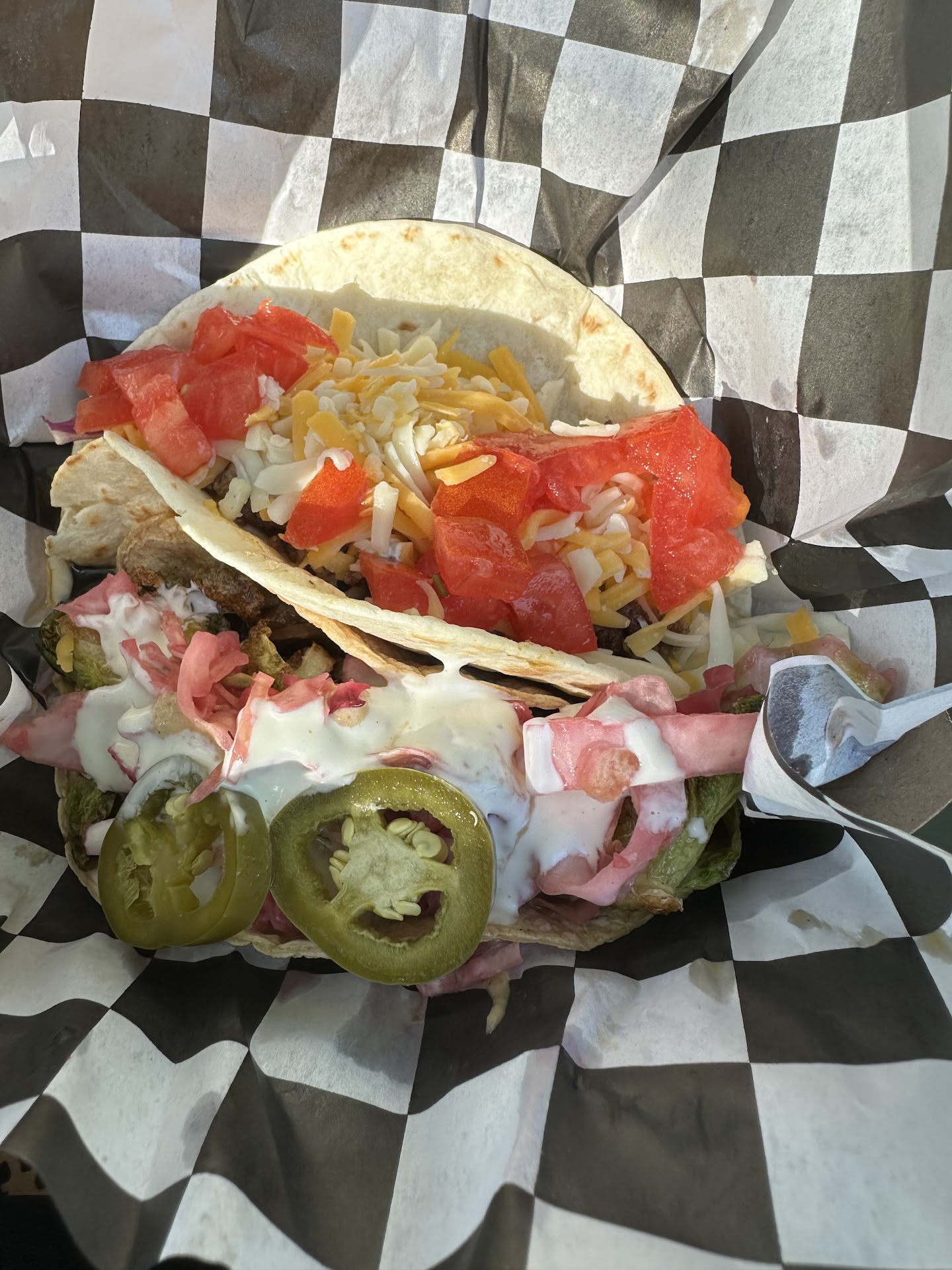 Read moreWe endeavored to try local tacos and these tacos did not disappoint! The seating area is cute, shaded and next to a coffee shop. We went on a Tuesday night and were slightly bummed that they had a limited menu on Tuesdays. However, we tried a few things that we probably wouldn’t have including the Tiki taco! It was dressed with a pineapple slaw, jalapeños and BRUSSELLS! I was intrigued and very happy with the results! The only drinks available were water so if you crave something different then pop over to the coffee shop for an additional beverage! Everything was fresh, the employees were friendly and the price was reasonable. Definitely...