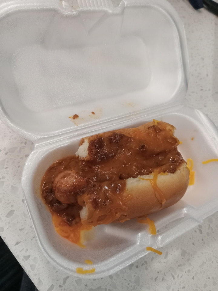 While I was standing at the counter, a male customer walked in with a problem with his order. He had chosen a number 5 that included chili cheese fries, but he wanted plain fries. He apologized for his mistake, and asked the female employee if she could exchange his chili cheese fries for plain fries. She emotionlessly went to the back and returned with another bag. The man looked inside the bag to find that she had replaced his chili cheese fries with (take a guess) another order of chili cheese fries. He told her politely again that he wanted plain fries. The woman answered that the number 5 came with chili cheese fries. Again the man apologized for his mistake, but told her again he wanted plain fries. Finally the lightbulb must have lit up in this woman's head, because she finally went back again and returned with regular fries. The man politely thanked her and left the restaurant.