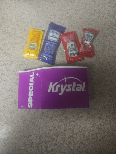 Krystal is not a safe place to eat. Always look at the scorecard on the wall and read it. Some employees do not have food handlers cards to even work on the premises. The thermostats are not in its proper places such as freezers and refrigerators. Food left out pass its serving time The preparation tables in the kitchen are dirty. It is so much written on their scorecard you can not read it all. Some Writing are covered by frame holder. If you saw the cooking area ,no way you would eat there. The dining area is very very clean. Women bathroom clean. Men bathroom filthy. no toilet paper or paper towels,disgusting.