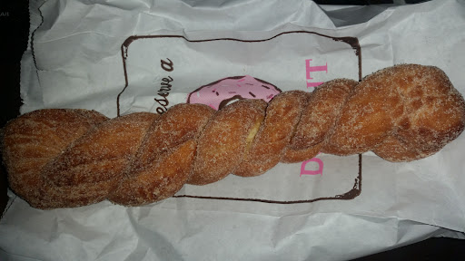 Read moreOver a decade ago, Krispy Kreme decided to drastically reduce the amount of white cream in their chocolate-iced kreme-filled doughnuts. Life was never the same... But then one day at Lickin' Good, I discovered the cream cheese éclair doughnut (unfortunate name in my opinion because the filling is a cream cheese frosting not cream cheese, which might be confusing). This doughnut is the answer to KK's blunder. A satisfying amount of cream is once again available in a chocolate-iced doughnut. Life is...