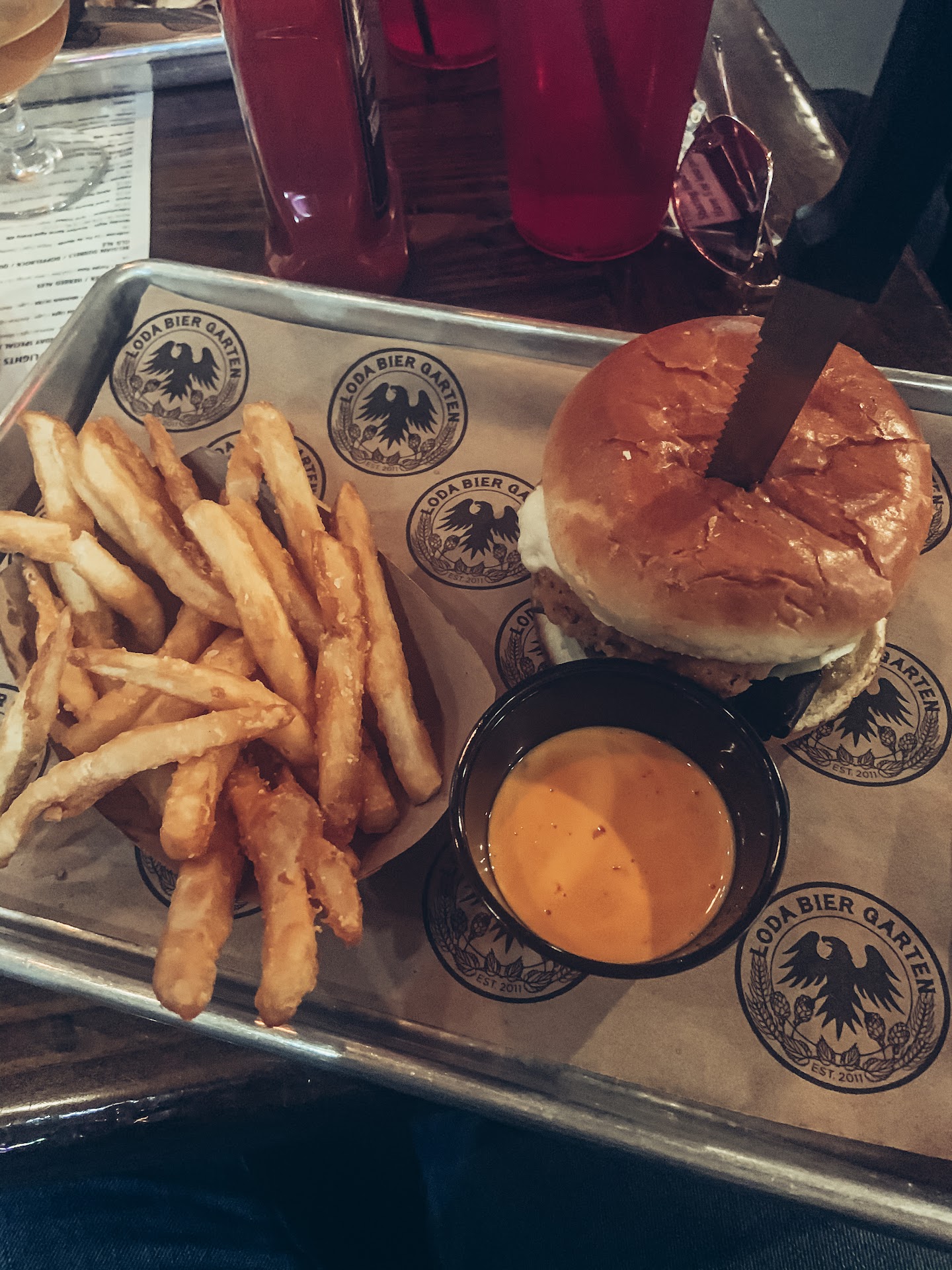Read moreWe ate here for lunch on a Sunday while we were visiting Mobile. We didn’t have to wait for a table and were able to sit down right away. They do have communal sitting if you aren’t with a group big enough to fill a table. We were super excited about the beer and wanted to order a flight but were told they don’t do those on weekends after we tried to order one. I feel like this should be posted somewhere on the menu. We tried to order several appetizers and they were out of a lot of them because it was Sunday and the waiter said they were consistently out of food after the weekend. I feel like if this is a big enough problem where your staff knows it’s every weekend then it could be addressed in the kitchen. We tried the Funkdified Fried Brie, the big pretzel, the Dirty Bird chicken sandwich, the chicken and waffle sandwich, the chili chili bang bang burger, and the seared tuna blt, also the fish and chips. All of our food came with sauces on the side and they were amazing. The ranch is the best I’ve had anywhere. The Slap Yo Mama sauce that comes with the Dirty Bird chicken sandwich was really good. The beer cheese for the pretzel was divine. That’s about as good as it got though. The food was all very just ok. I would not recommend the Mac and cheese. The beer selection was fabulous! If you are considering going here these are my tips: this is very much a “I’m drinking and need food at 1am” place. We tried to bring our kids and while it’s family friendly during the day it’s CRAMPED in there. It’s a bar so don’t think of it like a regular restaurant. I would love to go back if I ever just want a really...