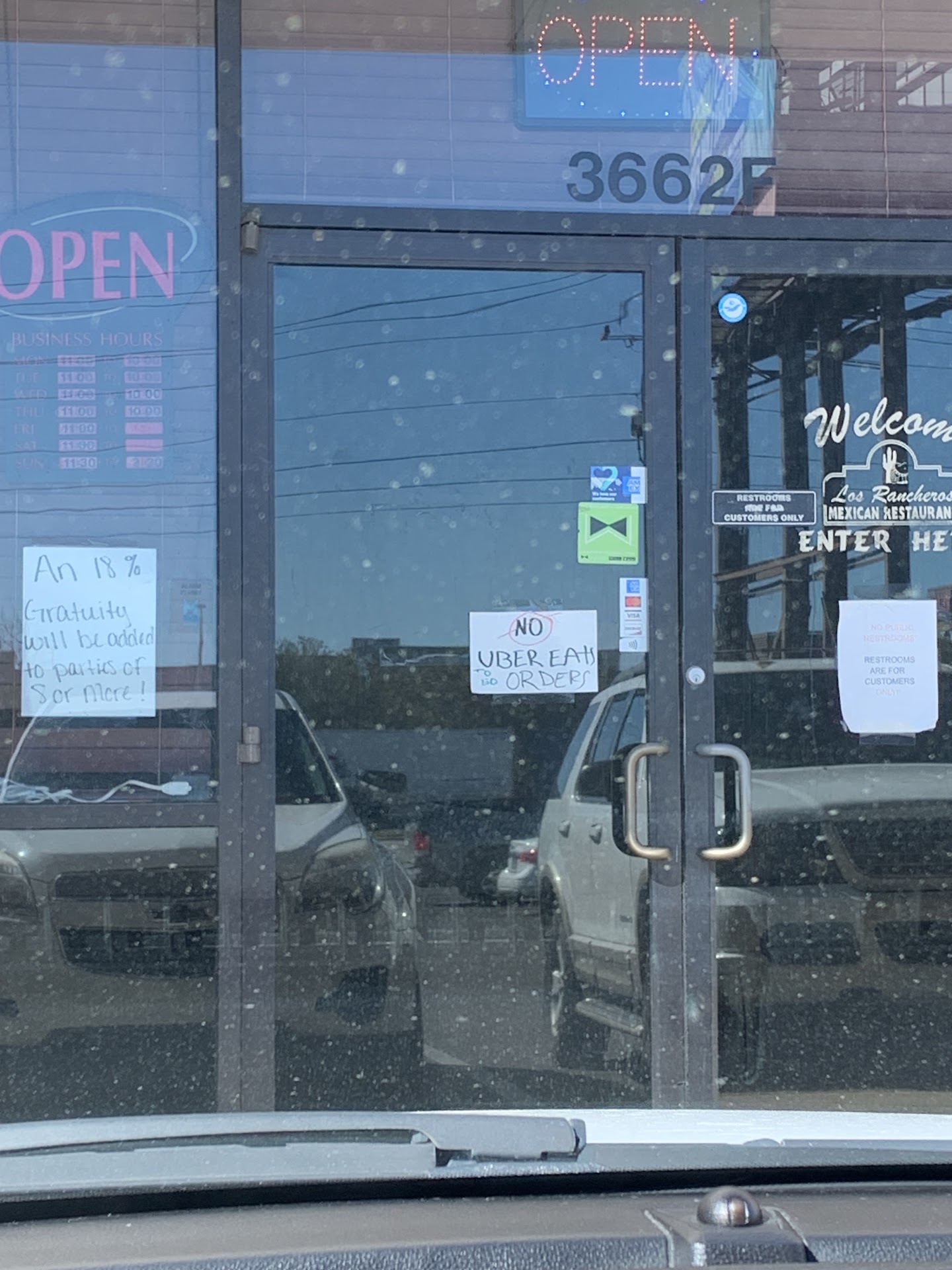 “Get some get right!” That is not my original quote, but it sums up my thoughts about this restaurant. I’m a first timer and I was ready to give this restaurant a zero based on service alone, but the food redeemed it. I took a snapshot of the front door because there were a few red flags for me and one being the gratuity post. Fortunately, I ordered pickup via GrubHub (also,apparently they’re anti-Uber eats- see pic). It’s not all doom and gloom here let’s get to what was in my opinion doing well and what wasn’t. Greeting (or presence of a host) at front= non existent (Just after 2pm) There appeared to be about two people on the floor serving and when the second one showed up, I walked up to her and asked where to pickup…?. She abruptly responded “at the bar”. 3 At the bar no one was there, so I waited a few more minutes, then decided to look in the kitchen, which was nearby. I asked the woman there if I could pick up my GrubHub, she said someone would help me…she gestured. I turned around, and it was the same lady who said “at the bar”. She confirmed my order and handed me my food. My gripe: it would’ve been simple for her to not only tell me to pick up at the bar and also, let me know if she would be right with me or that I would have to wait a few minutes. I’m not sure if there was a sign in the front either that lets people know pick ups would be at the bar. Again, I’m new to this restaurant so I didn’t know the ins and outs. That’s it concerning the service. The food i had (beef quesadilla, beans and rice and a chicken flautas) was good, and it is on par with other Mexican food here in the city that I’ve had the opportunity to sample. For that reason, I probably won’t go back there, because there was nothing special to make me want to come back when there are so many other Mexican restaurants that have good or better food and offer a better experience....