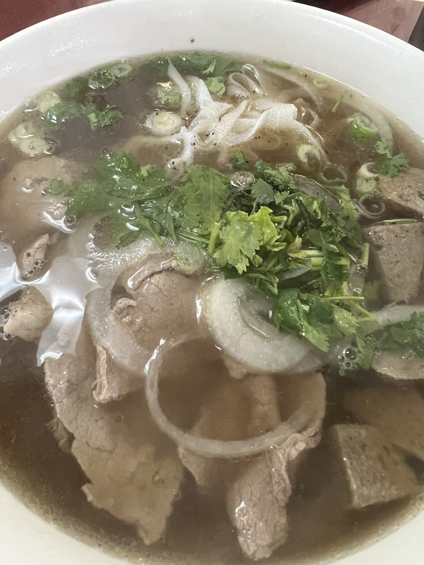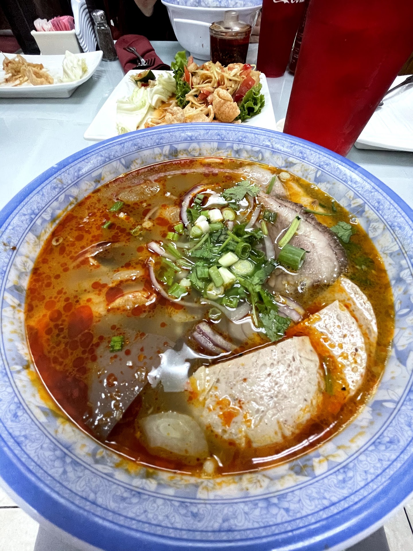 Read moreThe pho was OK. The meatballs were very rubbery. (Yen is better) My husband and I ordered an ex-large bowl and split it. I felt bad for splitting one item so we ordered pork and shrimp spring rolls. Both items came out together. We took one bite of the spring rolls and looked at each other. Not good. At all. The meat tasted old (pork was gray) and the shrimp was overly fishy. We didn't eat them and continued to our soup, which hit the spot.