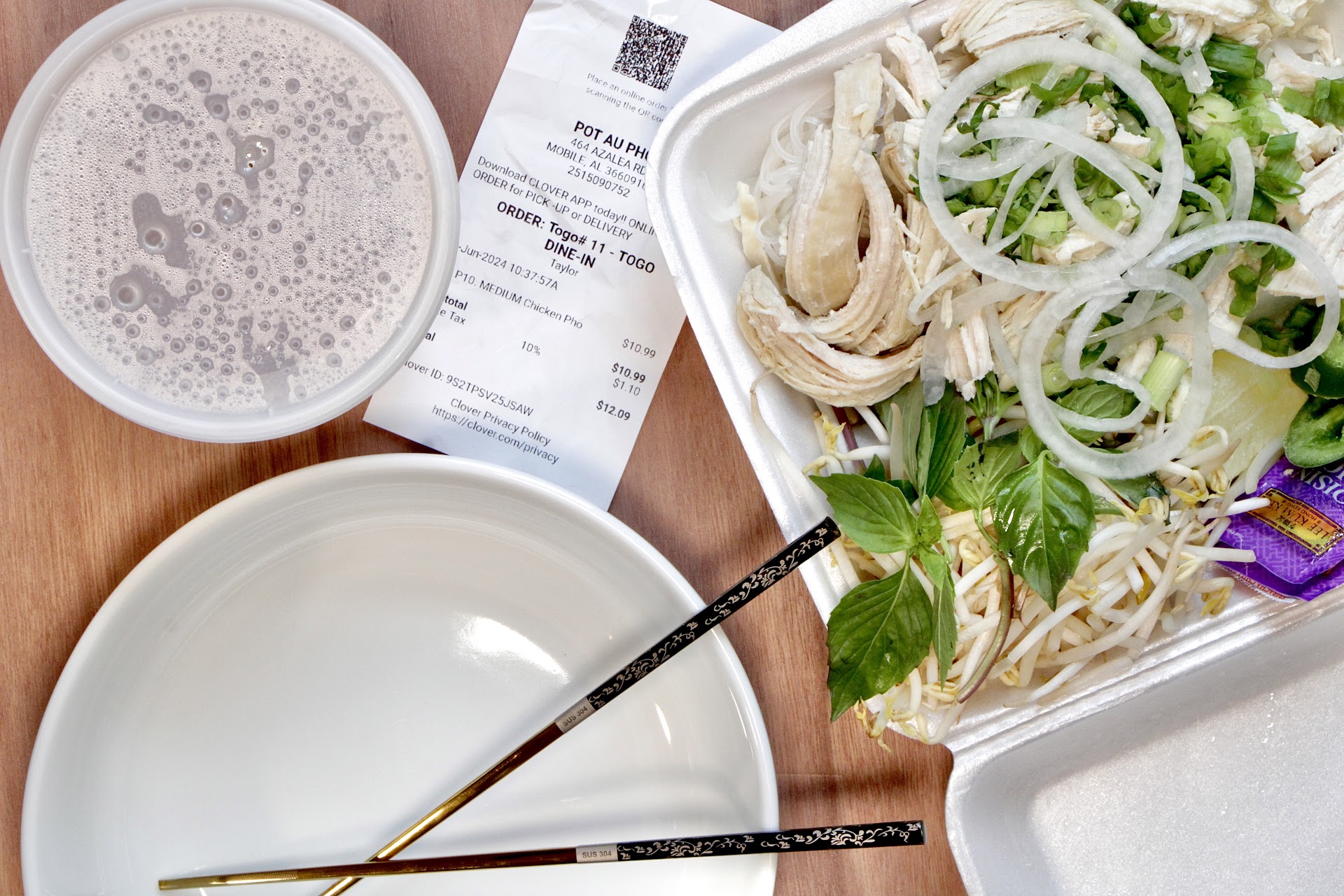 I tried Pot Au Pho Mobile AL on a Saturday evening, after having had a bad experience one day earlier for Friday lunch at Pho 88 -- where a server admitted after ~40 min of waiting that the kitchen lost our ticket. I will say that Pot Au Pho was an improvement over Pho 88 -- but that being said, Pot Au Pho was itself not stellar.