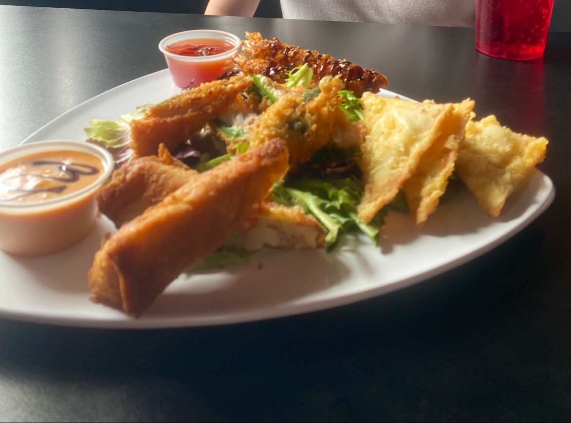 We started with the sampler appetizer because neither of us was sure what we wanted. Itās amazing! The crab wontons, jalapeƱo poppers, and shrimp were amazing! I liked every single thing, but those three I can rave about how good they were.