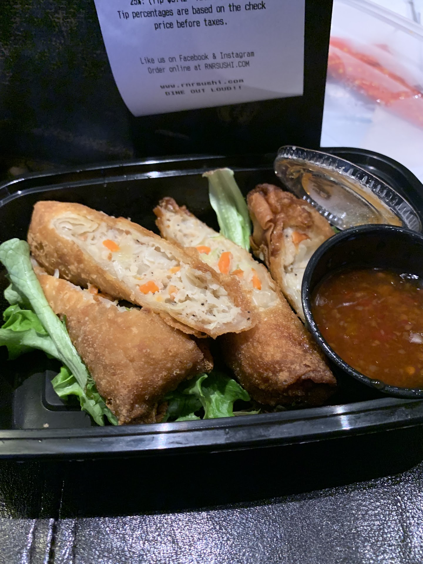I really had the intention on getting some sushi. After all Rock N Roll Sushi is a sushi restaurant. To be completely transparent I donât eat raw sushi. My sushi tastes are very elementary and cooked. I believe the first time I came here I had the spicy crawfish roll. My initial thought was to order the spicy crawfish roll and the egg rolls. Then the eel roll caught my attention. At some some point I thought for sure I was going with the shrimp tempura roll. Then I wandered off the classic menu and went to the starter menu. I was really digging the headbangers shrimp until a few seconds later. I decided to make a gut call for the stage divers. I wasnât exactly sure why because earlier in day I decided I had enough chicken for the day. I did keep my earlier egg roll inclination as well. As usual I ordered online. The wait time was about 20 minutes. I arrived to pick up my food. The restaurant wasnât packed but had a nice amount of patrons dining in. Since I made it to restaurant before approximate wait time I had couple of minutes before my pickup was ready. I was out of there in no time. When I returned home I was starving. I opened the plates and my food looked amazing. I tried the egg rolls first and they tasted like some of the best prepared egg rolls I had ever had. They were fried to perfection. They came with a chili sauce that was so good. The stage divers were next. I was absolutely blown away with the flavor of these chicken bites. They were so tender and seasoned well. The stage divers came with the same chili sauce that was paired with the egg rolls. A ginger flavored sauce also accompanied it. As stated before I loved the chili sauce. I didnât love it but it wasnât awful. I really loved the meal as a whole. If youâre not totally into the sushi scene this place has some enjoyable options to choose from. I give this...