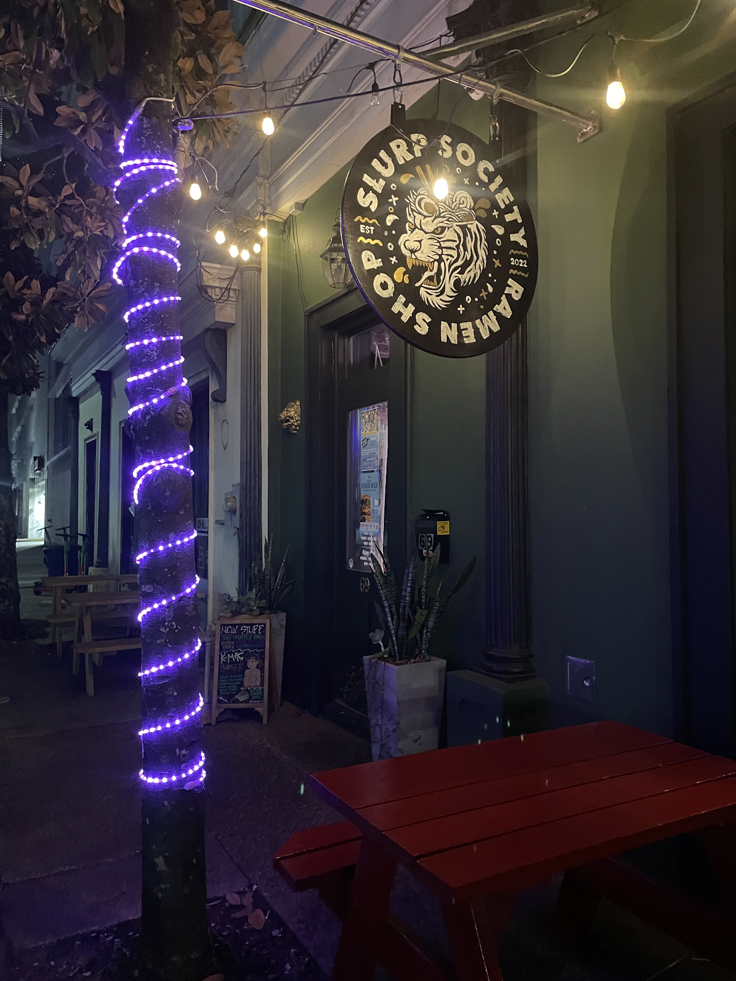 Read moreWe've been going to Slurp Society since it was at its old location, then when they moved in 2024 to their current location and now that they're under new ownership and a new menu. It's not the same quality, level of flavor, atmosphere, or service. It's become bland and trying to coast off the name. Today we went to try the new menu after the change. The order was Gumbo Dumplings, 2 Thai Fire Margaritas, 3 BYO Ramen, and 1 Dirty South Noods. We were served another tables Boo-Dan Eggroll and they received our Gumbo Dumplings. After the fact we realized... they ate one of the five dumpling and we were given the plate of four that was left... were kind of sick over this. We had ordered the Thai Fire Margaritas, in the past their drinks of been... of a normal portion size. And now they have a sign behind the bar saying there's at least 1.5 ounces of alcohol in their drinks. Well this $15 Margarita was all of 2 oz in the smallest margarita glass I've ever seen.. EDIT* In response to Chef Tyler, the problem with the drink wasn't that it only had 1.5 oz of liquor it was that it was only 2 oz of liquid for $15. And we weren't aware the other table had already had their hands in our food eating it till we realized the Gumbo Dumplings are served as 5 not 4... after checking your reviews and seeing your responses are all pointing the finger at your customer instead of owning the problem.* The Ramen was bland, weather you chose the pork, the spicy miso, etc. It's like flavor gentrified. We had ordered an extra egg in two orders of the Ramen but apparently a whole soft boiled egg, like it used to be, is now a half hard boiled egg. The JFC chicken is no longer and exciting addition to bowls but large, oddly chunked, chicken thigh meat with no notable seasoning. In the end this bill was $120 before tip and not worth the cost or the disappointment. Even with Chef Tyler randomly dropping off a mother's day mimso fusion test drink thing. It didn't save the atmosphere. It used to feel like special place, with care. Now it's trying too hard. Please don't offer VIP treatment to correct this. It's not worth...