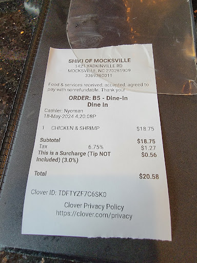 Edit: For reference, the Kimonos in Clemmons (10 miles away) has the same chicken and shrimp combination at $12.99, and it's the same quality and service.