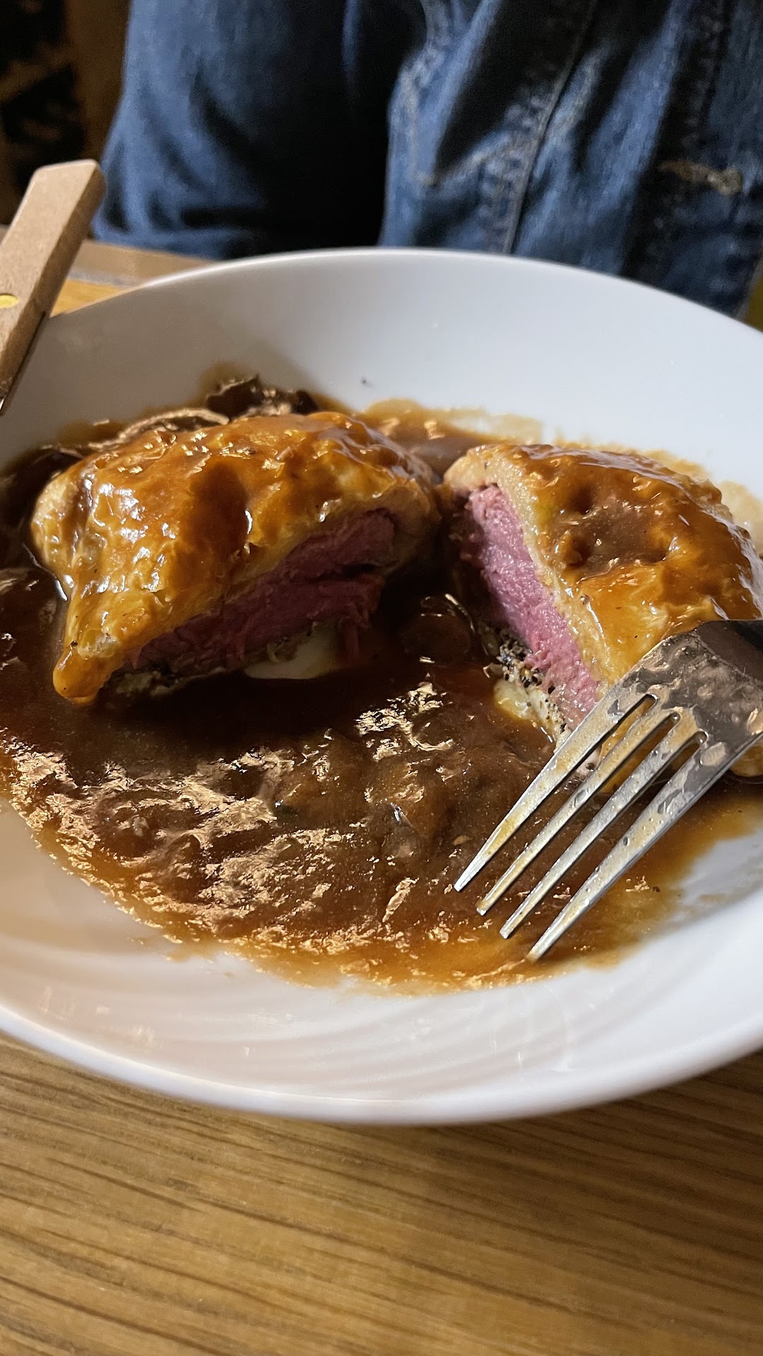 The chef cooks everything right there behind the bar. I don’t really drink but they have a good beer selection and a decent wine selection. I tried the Mushroom Al ajillo, Roasted Asparagus, the Asparagus pastry and I had an off menu dish that was rice, vegetables and vegan sausage that I can’t remember the name of but was really good. My friend had the Beef Wellington and she liked it.