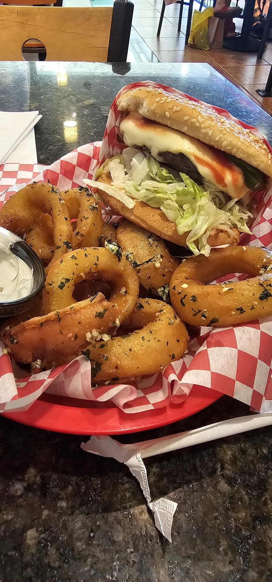 Read moreMy wife works in the mall, so I walk by Bob's pretty frequently, smelling and seeing the food on a regular basis. I'd been wanting to try it for a while now, and so a week and a half ago, I had that chance. My wife and I took out our 17 year old daughter to have some personal time with her, walking, talking, shopping, and eating. They went and got their favorite while I tried Bob's Giant burgers 🍔. I ordered the Western bacon burger, one of my favorites from one other fast food location. (Actually, it's the only one I like from that ⭐️ location.) Anyway, I wanted to see how they did it, and you know what, they did great. It was delicious! The BBQ sauce was so tasty, and the onion ring was nice and crispy on the outside and just right on the inside. The patty was big and juicy, and it came with cheese paper. (Remember those old 🧀 📃 commercials?) The only problems I had with my order were the fries, soda, wait time, and price. I ordered my food before my family but got it almost 10 minutes after they had already sat down, and their place had a line. Then, with the fries, they were just generic. Lightly salted and crispy inside and out. Soda was watered down because of way too much ice. $22 for this, meh. 🫤 Overall, it's still a pretty good...