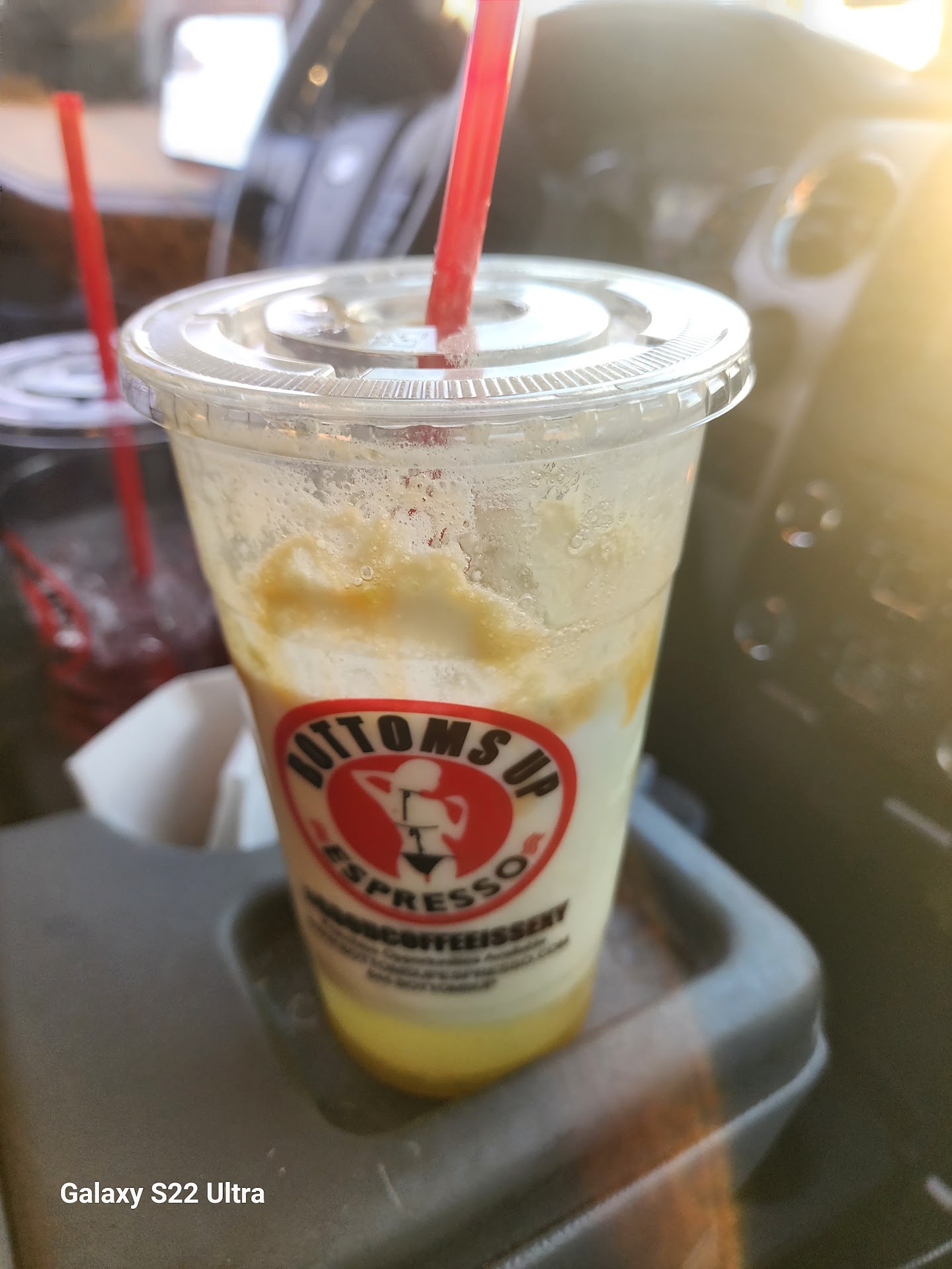 I had never been here before there were 2 cars in front of me took a little while. I went to pick up a beverage for a bartender at my local bar. She was pleased with her order which she had written down for me I believe it was a screamer. The girl at the window was very friendly and had a very cute outfit on. I normally wouldn't have gone here because I don't drink the type of drinks they have. I'm also embarrassed to say I pre-judged this establishment not actually knowing anything about it and by what I imagined about service and how they would be dressed. I was wrong! It was nothing like I imagined. I love that I was wrong! Service was great as well as friendly, beautiful and very classy. I should have not judged a book by its cover or name. I would recommend this place just on service. I have no idea what drinks taste like I was doing a favor for another person. Thank you Bottoms up Espresso for setting...