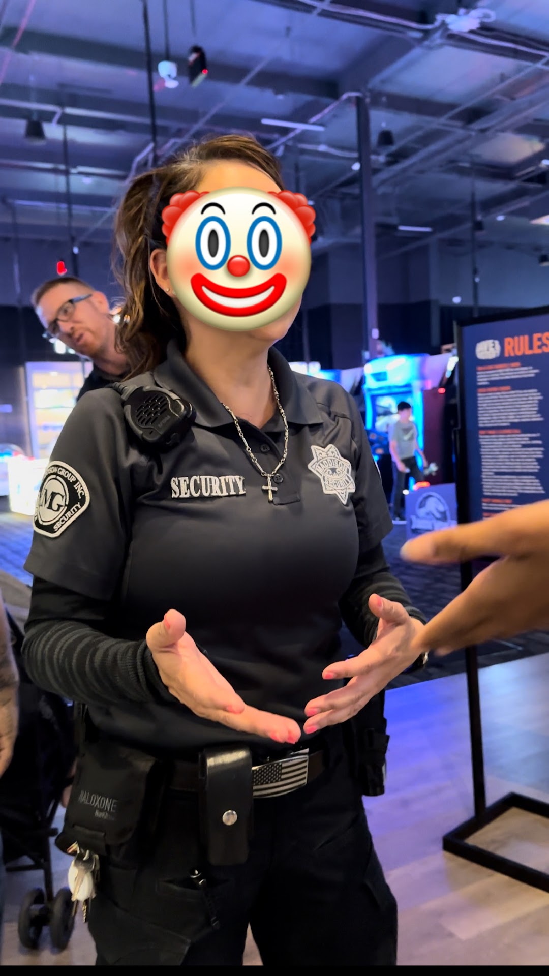 Those security guards are super weird and creepy, like they're straight out of a sci-fi movie. I'm never setting foot in this Dave & Buster's again. And the rules about kids not being allowed? Seriously, who even knew that was a thing? We come here to have a good time, not read a rulebook. This whole situation was just plain scary. If I had the chance, I'd sue for sure. 🙅♀️
