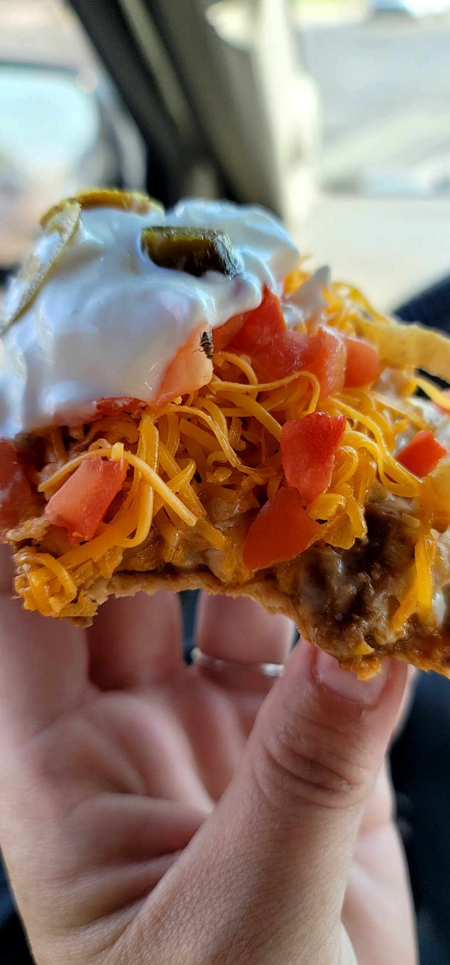 Read moreI have NEVER had any issues with Del Taco in 35 years until last week. Last week I ordered several items. One being the new tostada. Looked amazing! Everything was going good, I ordered my food thru the drive thru and got my bag and left. As I'm driving down Oakdale road I had grabbed the tosdada to eat while at a red light. I grabbed the box out of the bag, opened it, and started to eat it. About 4 bites in I seen something moving! Yes, moving. My eyes were immediately drawn to what was a moving bug who's legs looked to be stuck in the tomato on my tosdada!!! I literally FREAKED out!! I was just staring at this bug while it was moving around in disbelief. I immediately snapped a few photos as well as a video. I put the remaining tosdada back in the box, shut it, threw it in the bag and called the manager immediately! Needless to say the manager didn't believe me when I told her to check her tomatoes. She told me she'sbeen serving food all morning and seen no bugs. Well, this bug was in an enclosed box so it didn't come from my vehicle is what I told her. My AC was on low, no windows were even open in my truck so they're was no way this bug came in. Maybe it came from the cardboard box , the food box, I don't no, but it was in the box when being served to me! She didn't take it seriously therefore I have called corporate and reported her and the damn bug!!! I will NEVER come back here after this!!! Also, they NEVER have me a reciept. I think the managers name was Gabby. She was HORRIBLE!!!!! She shouldn't be dealing with the public! Shane...