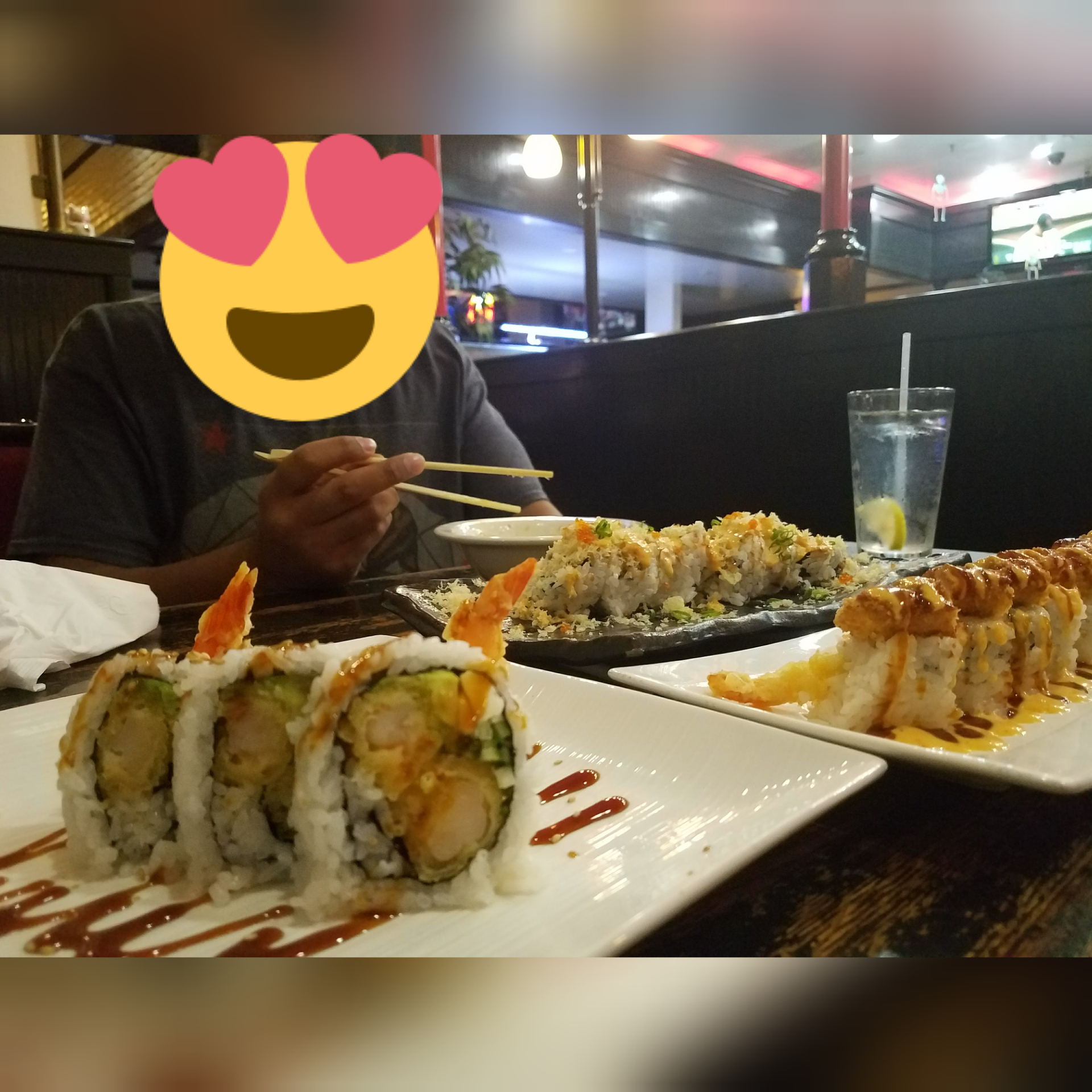 For the price its not that great. We ordered pretty basic plates since we hadn't been here in a long time. Chicken teriyaki, Tempura Shrimp, Calamari Steak and their corresponding rice and Miso Soup. First up, Miso soup was real cold which seemed to make it bot as tasty. I recall the soup being real good. Rice seemed old, it was very dry, almost under cooked. The Chicken was ok, pretty bland, but they seemed to go for quantity vs quality here. Tempura Shrimp was better, but the sauce was almost just water, no flavor. The Calamari steak was so overcooked it was extremely rubbery, almost like chewing on grisle. Maybe I'm being too picky. The place was full, perhaps the rolls are of better quality. Careful going to bathroom, they are clean, but the floor is covered in ibdont know what. Just standing you can feel your feet sliding out from under you. Our server was very nice and patient. Replaced our Calamari steak no problem and very attentive. Maybe it was just a bad night for them, but I...