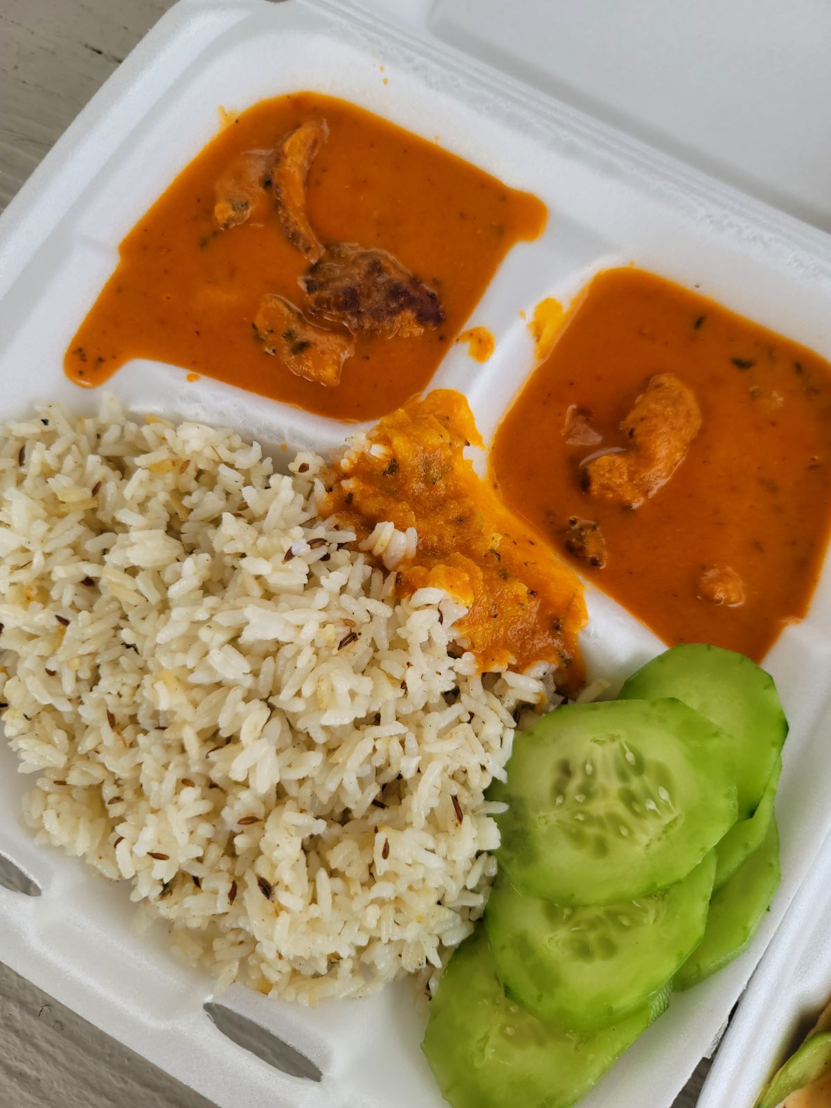 Ordered Butter chicken and onion Pakora online for pickup, was shown that it would be ready by 5:45. Had someone pick it up, a few moments later when it arrived I looked at it, tasted one bite of each and called the food truck.