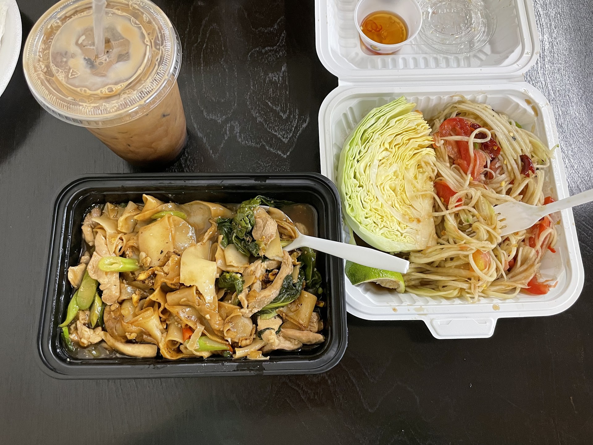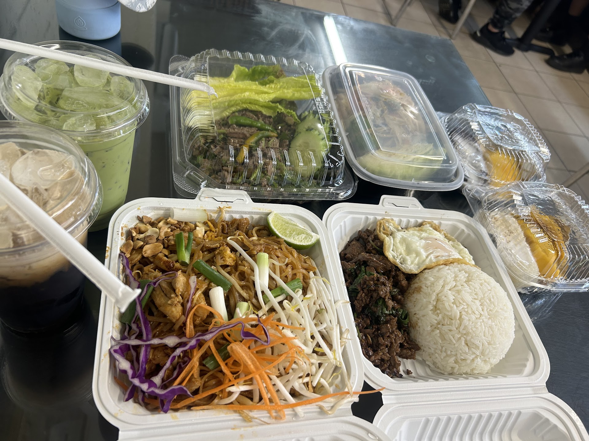 I have been going here ever since it opened and up till now the quality and service is still excellent. The restaurant is inside the Aqua Blue store. The lady behind the cashier is very friendly and accommodating. You have to be patient because your food is freshly made and there are plenty of orders every single time. The food is to-go only, but seating is available. I would recommend the Papaya Salad Lao style and you can also choose the level of spice. Another dish would be the Pad Thai and either the red or yellow curry. Get their drinks as well, I have tried all of them and depending on your tastebud it always matches with the dishes. They don’t have soda, but you can get the soda from the store. Went today on a Saturday and the line was long, which shows that they are super busy. It’s the Lao, Thai & Cambodian New Year this weekend so they are closing early today.