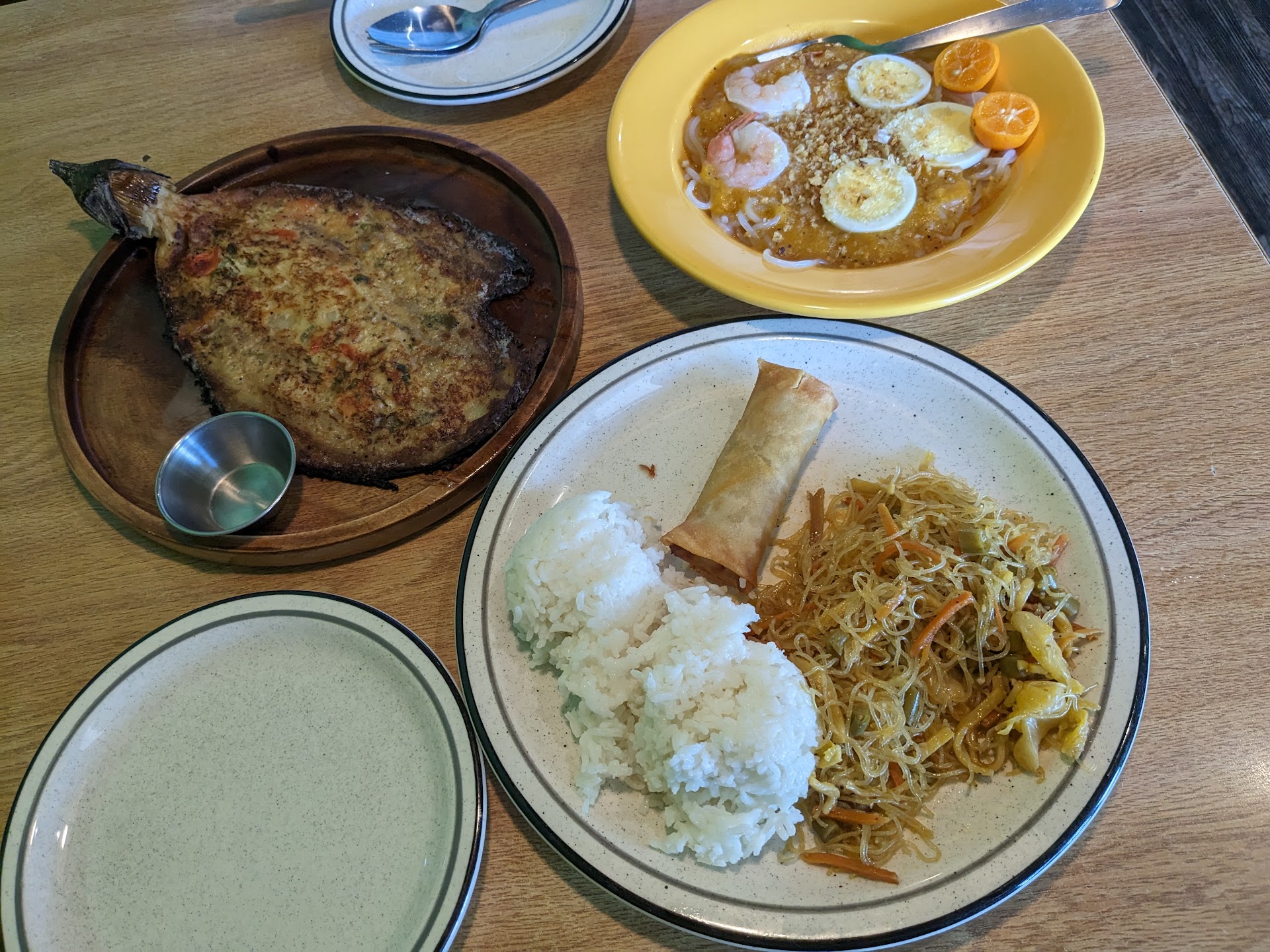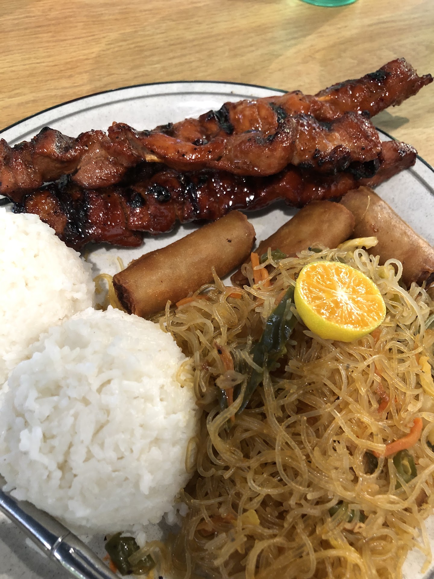 Read moreI picked up takeout for dinner. I really wanted to rate this place higher, believe me I love Filipino food, and Modesto has no restaurants, or at least last that long. A prior place by a casino on McHenry was Fil Am Bros, but they no longer exist. May be due to the pandemic, or people are real unfamiliar with Filipino food. Again, I wanted to give this place a 5 star review, but the combo plate I ordered was okay. I also asked to get the Barbeque pork and chicken Skewers as an a la cart request and they were flexible the order. That is a plus, instead of charging three separate Combo Plates. However, the barbeque was rather bland. It seems like they just doused the meats in some sauce and grilled it on the spot. For improved tastes, the skewered meats really should be marinated at least overnight. Pros: There's local Filipino Restaurant less than a mile from my house. I guess I'll go there for a quick Filipino dish fix. Cons: Like I mentioned earlier, the meats and sauces are bland in my op. I forgot to mention the Pancit is also very tasteless. Also the Shanghai Lumpia are so minuscule, like the size of half my thumbs! It was soggy and crunchless. Being so small, how can it be so un-crunchy? I highly recommend Jeff's Cuisine in Atwater, or Papa Urb's In Tracy or Stockton. At least Modesto has Filipino Cuisine - They should improve on the flavors though. For the owners that read this review please don't think I am trashing on this place; I really want you to thrive, since Filipino food is rare over than the Chinese/Japanese/Korean blended restaurants Modesto has to cater to the unfamiliar with lesser known...