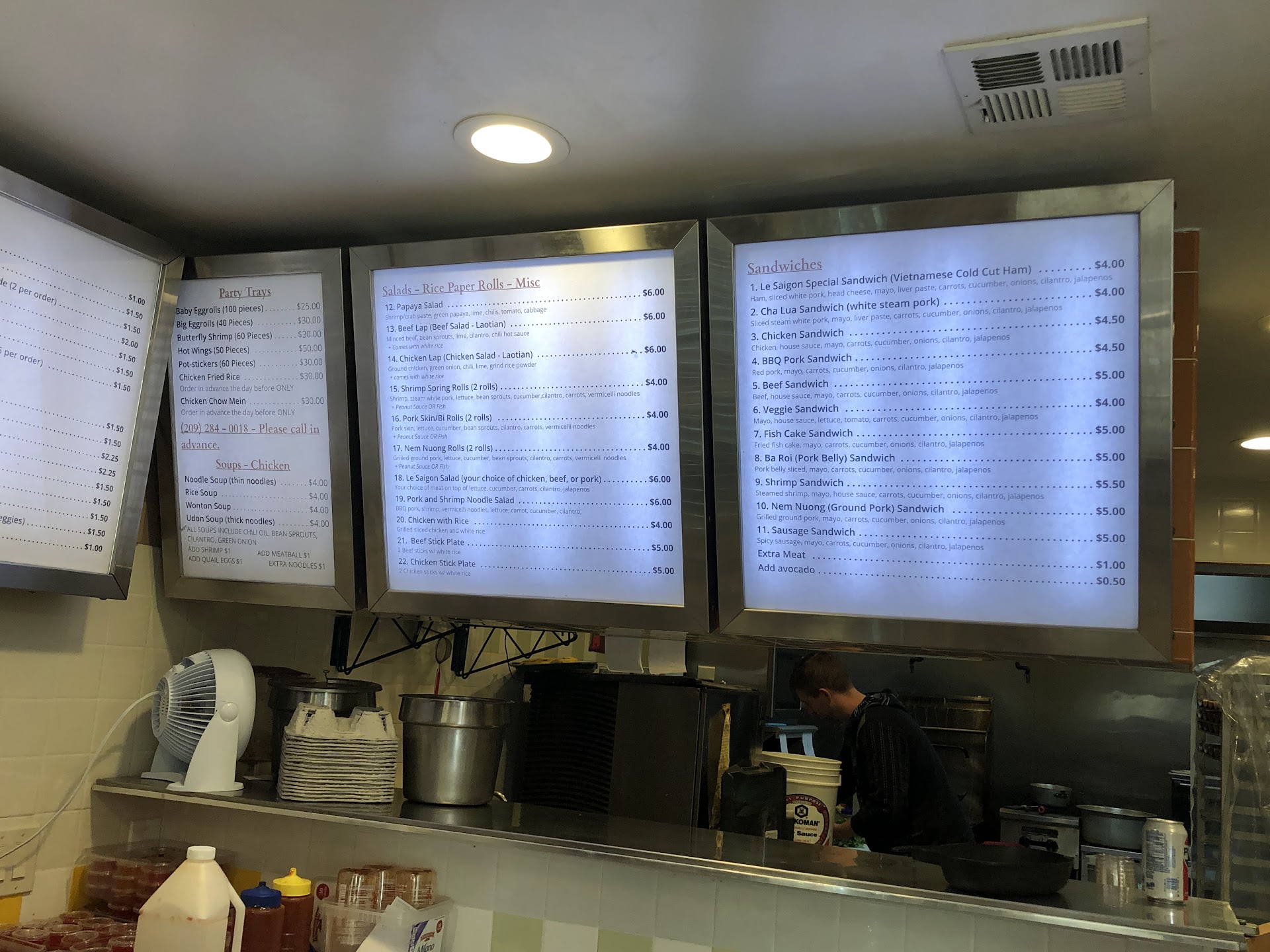 Read moreThe sandwiches used to be delicious, but ever since Lee moved to the Carver location it's been different. The bread is different it's an entire different type of bread and they don't BBQ the meat anymore like they used to. The price also went up to twice as much. For that price I rather just go get a burrito than a over priced sandwich filled with carrots with fatty meat on a chewy French roll. I used to get the pork patty with veggies and they used to cook it. The last time I went they were trying to sell me a cold pork patty.. Really? If that's the case I could go buy some pork patty's from my local Asian store. The only thing I recommend are the small egg rolls.. Everything else has just gone downhill. The noodle soup is extremely greasy I had a ring of oil on the top. The rice porridge soup is okay, but also very Greasy. The last time my husband got food there we were dissatisfied. So we been going to Saigon one when we crave...