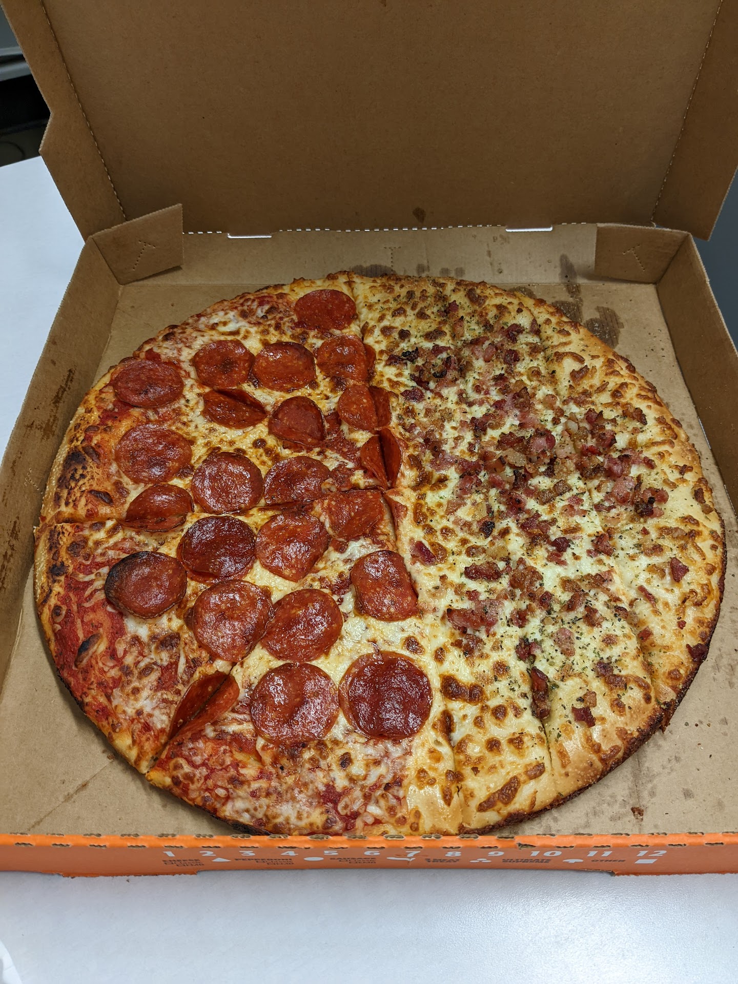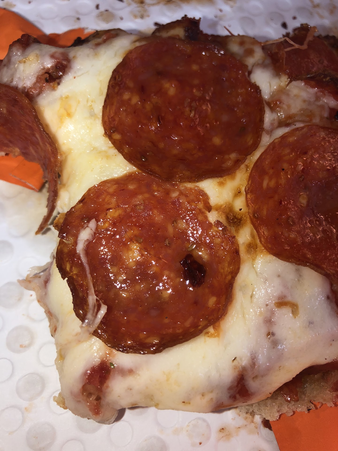 Read moreIt was close to 10pm they were cleaning up and about to go home. And so we got 2 pizzas. They only had pepperoni pizzas at that point. The pizzas looked and tasted like they had sat in the warmers all day. NOT GOOD!! I was charged full price for them. l wouldn't have mind if they were freshly made. I would suggest to the manager or supervisor in turn to deeply discount those unsold late night products or just plainly throw em away, which is what we ended up doing. Not a very good experience. On a more positive note, the chicken wings were really good. We got the bbq one and the traditional Buffalo. đ Don't get me wrong, we'll still go and get our pizza there. Next time, we'll just try to be there a...