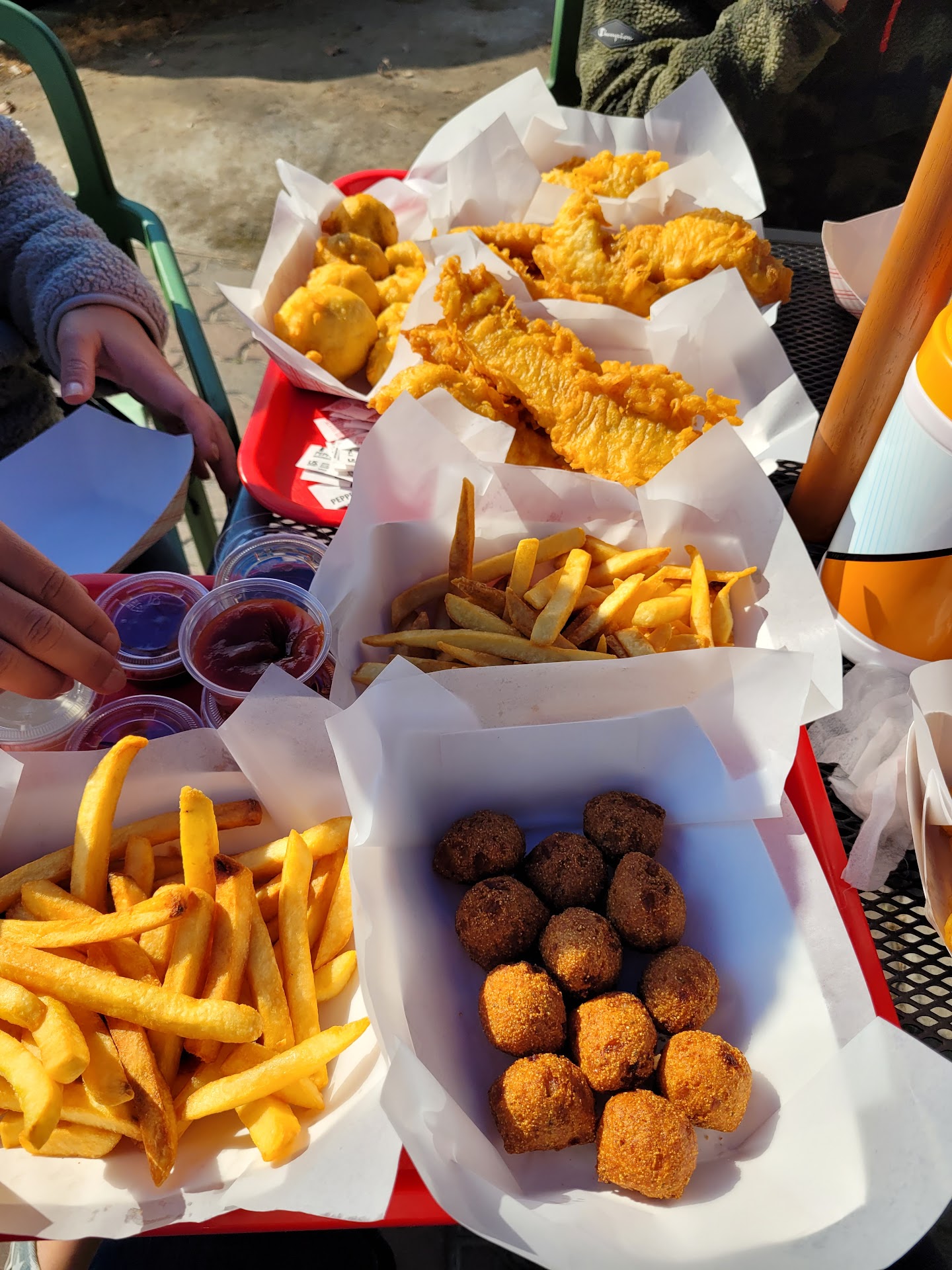Read moreI'm always skeptical of seafood places far from the coast. Since I've moved to Tracy from the Bay, I've been on a hunt for a good fish and chips place and this is the spot. From the outside I peeped into the kitchen and noticed the floor was clean and although the place looks outdated, it doesn't matter. The service is fantastic and my family had a lovely experience. I was planning on writing this review the same day but I always look forward to tasting the food cold. I believe food should taste fantastic hot or cold. Sure enough, the portions were perfect enough to have lots of leftovers. We made sandwiches with the leftover and it saved my from being behind my stove. Definitely a place to stop and dine. While you're there, get the fried mushrooms and hush puppies.Don't rush to eat the mushrooms because they store alot of steam....