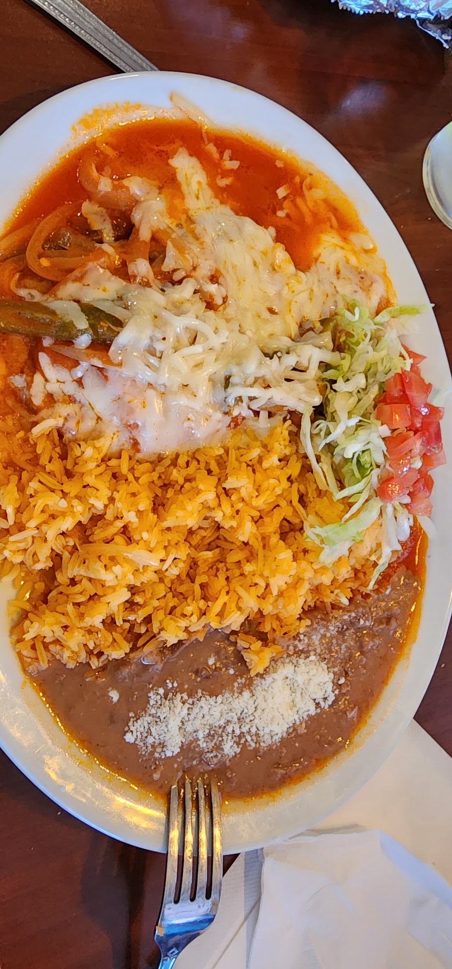 Read moreI've been wanting to come here for a while after passing it so many times. Came in around 1-2 pm kinda dead, looked more like a venue with a restaurant. We were approached and then Said we could sit at any table so I walked towards the booth seated tables and then they stop us because they weren't clean so we chose a regular table with chairs. No biggie. The chips themselves were decent but the salsa was mostly water. Very watered down salsa. Looking over the menue they had quite a large selection. I went with a wet burrito. The portion size on that was great but the the burrito was lacking flavor. I specifically ordered pastor but there must have been less than 2 Oz of meat in the burrito. Very little meat, more just rice. While we were eating I noticed one of the waitresses sweeping and I heard something large being swept and I looked closely and it was a syringe (no needle) being brushed around. Pretty odd. Hopefully it was part of some alcoholic drink where it's a shot in the syringe. Would not recommend...