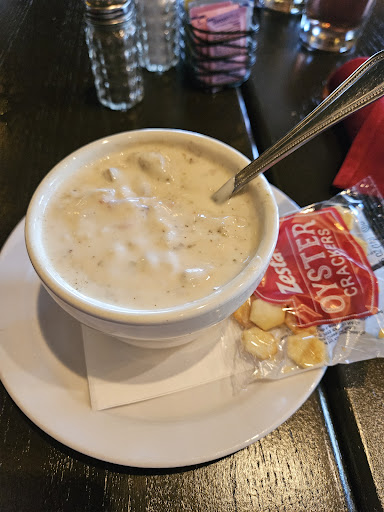 Once seated, we were given drinks immediately. I had the clam chowder and my wife had the potato soup. Both were homemade and delicious. I ordered the pot roast (15.95) and my wife ordered the filet (22.95). Both were fantastic and came with the best mashed potatoes I've ever tasted, and a vegetable medley. We shared a slice of cheesecake for dessert and my wife was delighted to see that it came with two large chocolate-covered strawberries on the side -- even more delighted when I let her have them both. The meals had nice-sized portions and we both took home leftovers which we had for lunch today.