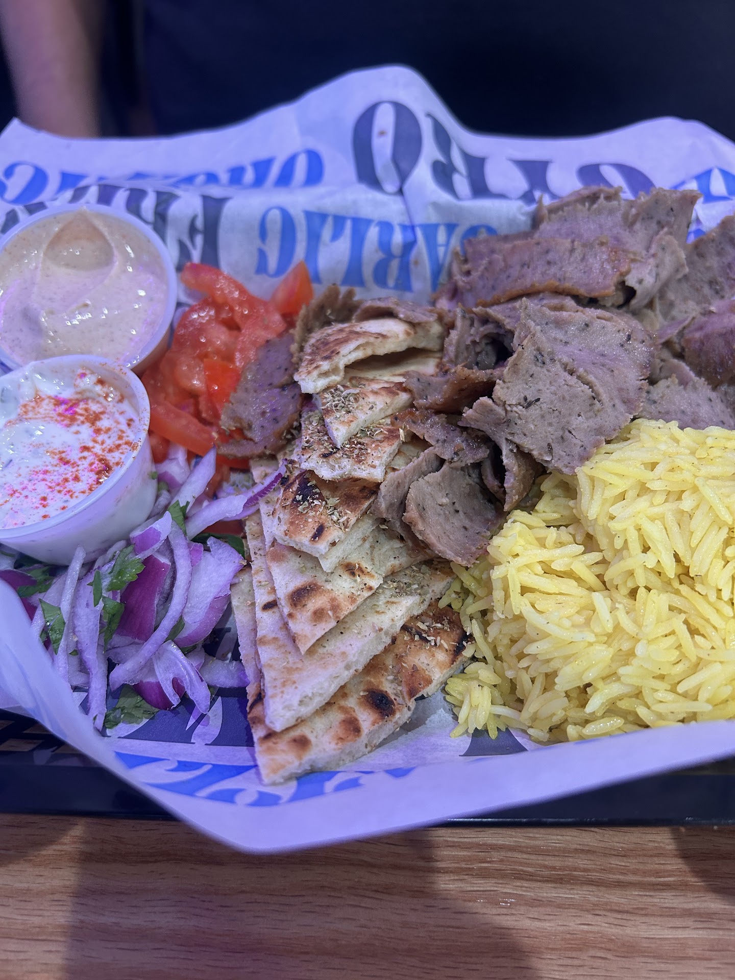 Read moreStopped in looking for something different. We found it at Nick the Greek. Lady at the register was nice and answered all our questions. We tried the beef and lamb gyro plate. The steak protein bowl. Nicks fries and the froyo with baklava and honey. I drank the mandarin cardamom and dragon fruit strawberry drinks they had and both were refreshing and delicious. All plates were hot n fresh. Steak was tender. Rice that is served in all plates we ordered was very tasty. Veggies were crisp. Over all yummy food with lots of flavor. The fries I ordered came hot and fresh with chicken, a spicy sauce and green onions. Although very tasty and would order them again the chicken was overcooked and did not add to the flavor of the plate. I would definitely try fries again but with a different protein. I enjoyed the froyo it was a nice combination. We had stopped in at 8pm and in the time we sat n ate the place filled up and plenty of people came to pick up orders. Clean popular place I wish my family had...