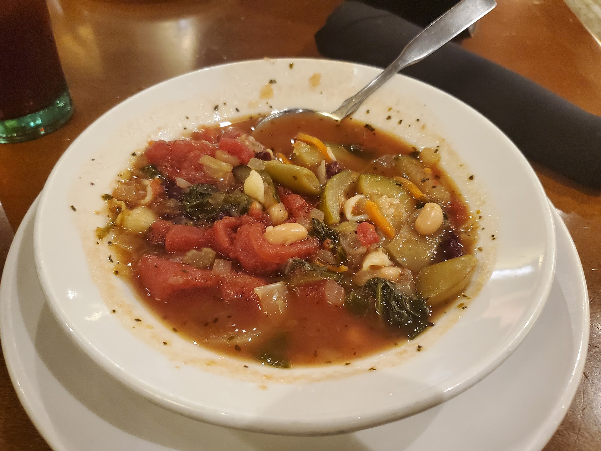 Read moreOh my gosh! Let me start by saying, we got seated super fast. Service was Awesome and the food was Fantastic! I got the Creamy Mushroom Ravioli and my date got the Giant chicken parmesan. The portions were good sized, the flavors well-balanced. The chicken was moist and cooked thoroughly (bonus points for that). I got the salad and my date got the minestrone soup, both quite excellent. The bread sticks themselves were Divine. We also ordered the fried lasagna and mozzarella sticks for appetizers, both super yummy. And the warm apple crostata and black tie mousse cake for dessert, both delicious. My favorite part was being asked if we wanted free samples of wine (I've never been to a restaurant that did that before and my previous experience at an Olive Garden I did not get offered that). The wine was delectable. I personally would recommend this specific Olive Garden. Also very cleanly restuarant and friendly staff. Again, all well-balanced flavors. For Italian food, it's less than authentic, but I personally was in love with it all. There is handicap parking and wheel chair access. Also the facilities seemed to be well-maintained. 10/10 Will recommend it to friends and family. (There was more food than shown but it was so good I ate a bit of the appetizers and salad before taking photos.) Oh! And I've gone places with yucky water. The water there was...