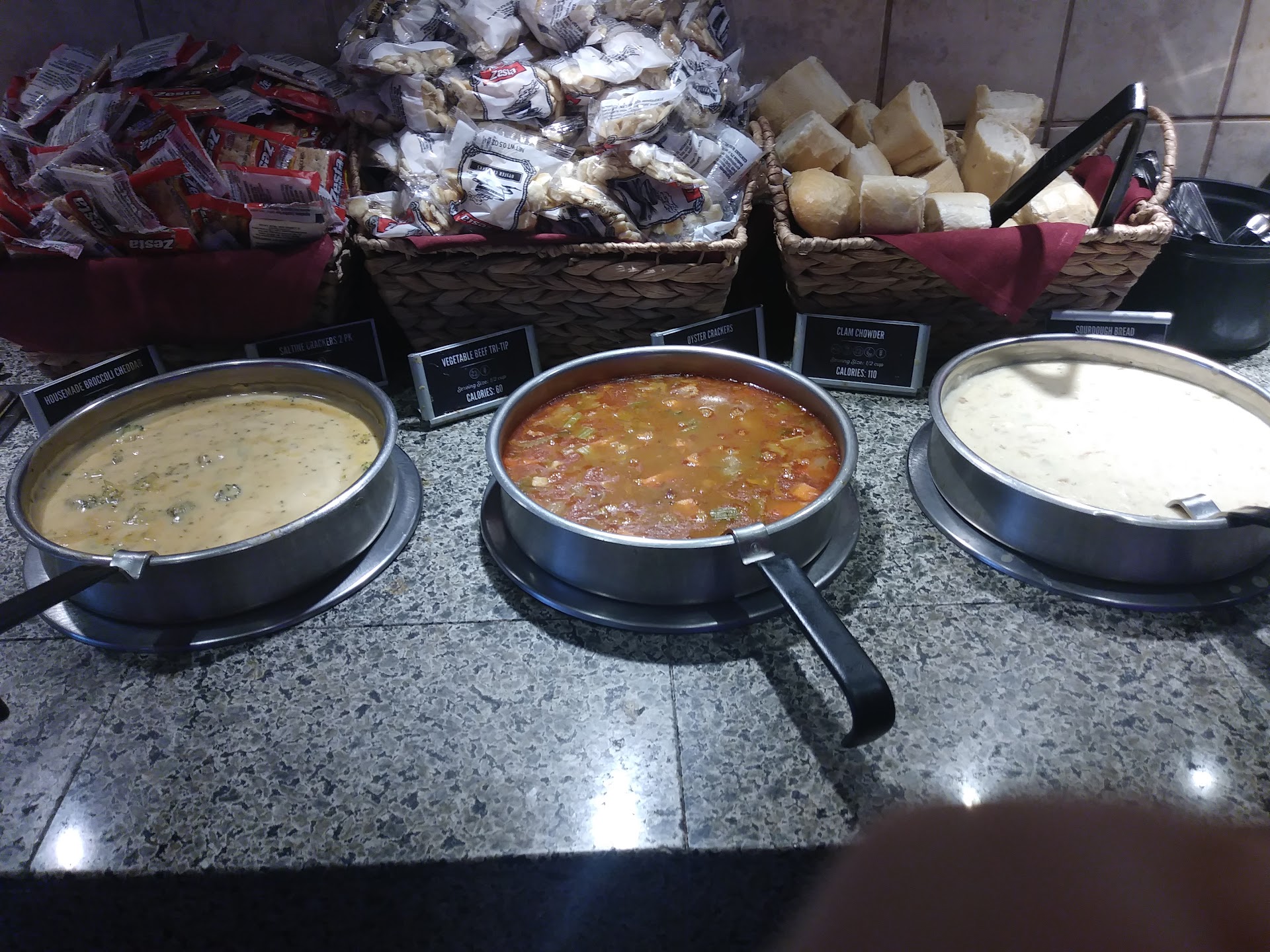 Read moreThis is for the delivery. The portions and quality were the same as if I had been to the establishment. I feel the delivery options were over priced, and the website forces you to choose a sauce if you pick the chicken wings, which are perfect without sauce, and adding a "no sauce" note doesn't stop them from getting doused in something I didn't want. I ultimately washed the sauce off with water, and had to re-fry them myself, and while they were still edible, I feel it was a huge waste of $25. (That's for two orders.) I was very disappointed as the wings are my favorite part of the salad bar. Again, the fault lies in the website design and inability to chose a sauce free version of wings. The famous cheese toast was still excellent. The steak was medium at best, when I ordered well done, however I generally prefer medium well, and only order well done to ensure that when it is brought to me under cooked (Every place that does steak does this!) it is still at a measure of done-ness that I can eat, which prevents having to send it back. Or in the case of delivery, finish cooking it myself. I have been to the establishment numerous times and I have never had any issues there. The staff is always friendly and accommodating, the food is excellent, and the salad bar chicken wings are the most amazing things on earth. While my experience with the delivery has soured me on ordering delivery from there again, I would like to note that I will still go to the restaurant, and recommend others to...