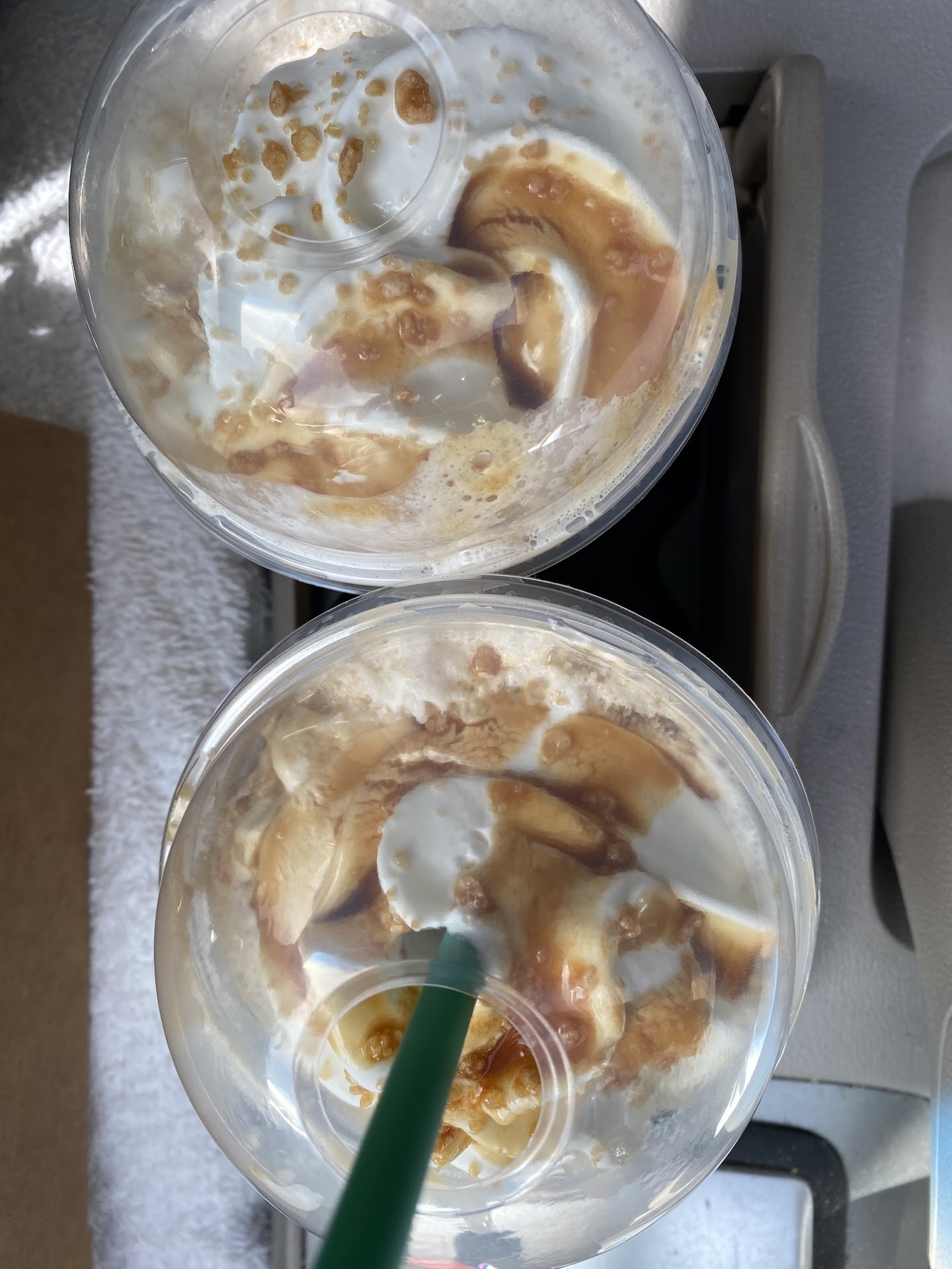 Ā Ā Ā Read moreI used the drive thru to order 2 Venti caramel ribbon crunch frappe. The girl who took my order was nice & friendly. After leaving I was sitting at the stop light at Briggsmore when I took my first sip and realized my drink was a regular caramel Frappes and not my caramel ribbon crunch.So I made a u-turn and went back to the drive thru and I told the girl I just came through and my order was incorrect. She asked what was wrong and I replied both of my drinks are regular caramel Frappes and not the drinks I ordered. Then she replied, āwhatās missingā as if I should know what goes into the drinks, was my thought. She said okay Iāll remake those.. So I pulled around to the window and waited for my new drinks to be made. 5 minutes go by & Iām waiting and watching them laughing & horsing around. Then the guy comes to the window hands me my 2 drinks & says have a nice day. I look at my drinks and you would think after messing up my first order they would want to make the drinks better, especially in appearance. No. Barely any topping which makes some of the flavor to the drink. What really irritates me is the fact I canāt afford Starbucks so this is a treat when I do go & to spend $14:50 for myself and my...