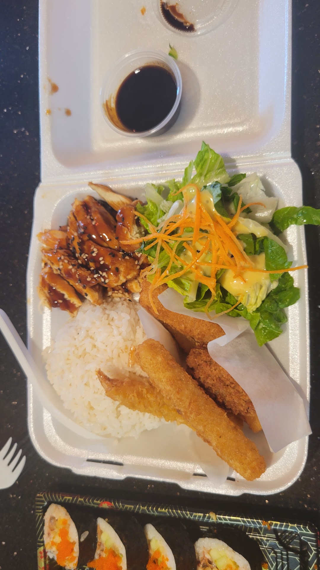 We got a spider roll, a Dragon Roll, and the best role of the knights a y and M roll which had tuna, spicy tuna and avocado. This one was fine, but the Dragon Roll relied too heavily on fried food and sauce, and the spider roll had Bland unseasoned crab and no other redeeming qualities. The mixed fried seafood was a complete failure. We paid extra for an upgrade that included vegetables, but a vegetable was an entire dice white onion and a few anemic pieces of broccoli. Definitely not worth the 4 extra dollars to add a pile of unappetizing bland onion. On top of that, the breading was so thick that it turned soggy around the shrimp and crab, and the one waster we got was filled with a disgusting seasoned mayonnaise that burst in your mouth and was wholly unappetizing.