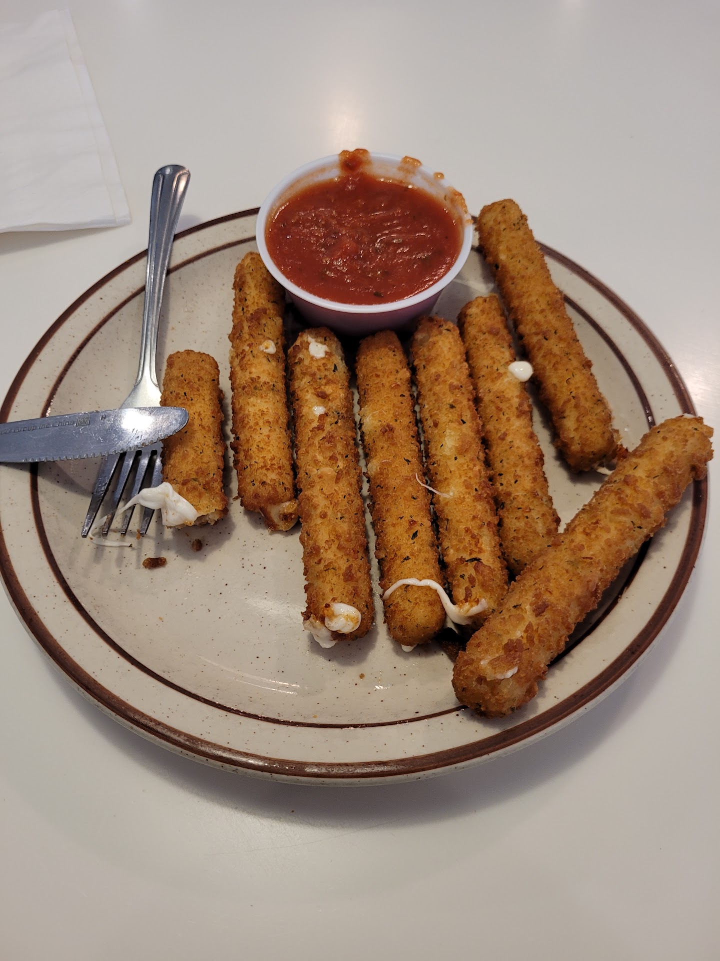 My partner and I take a few minutes to figure out our order and place it the next time she circles back around. My girlfriend speaks up and asks the waitress to grab me a sprite while placing our orders and she left.