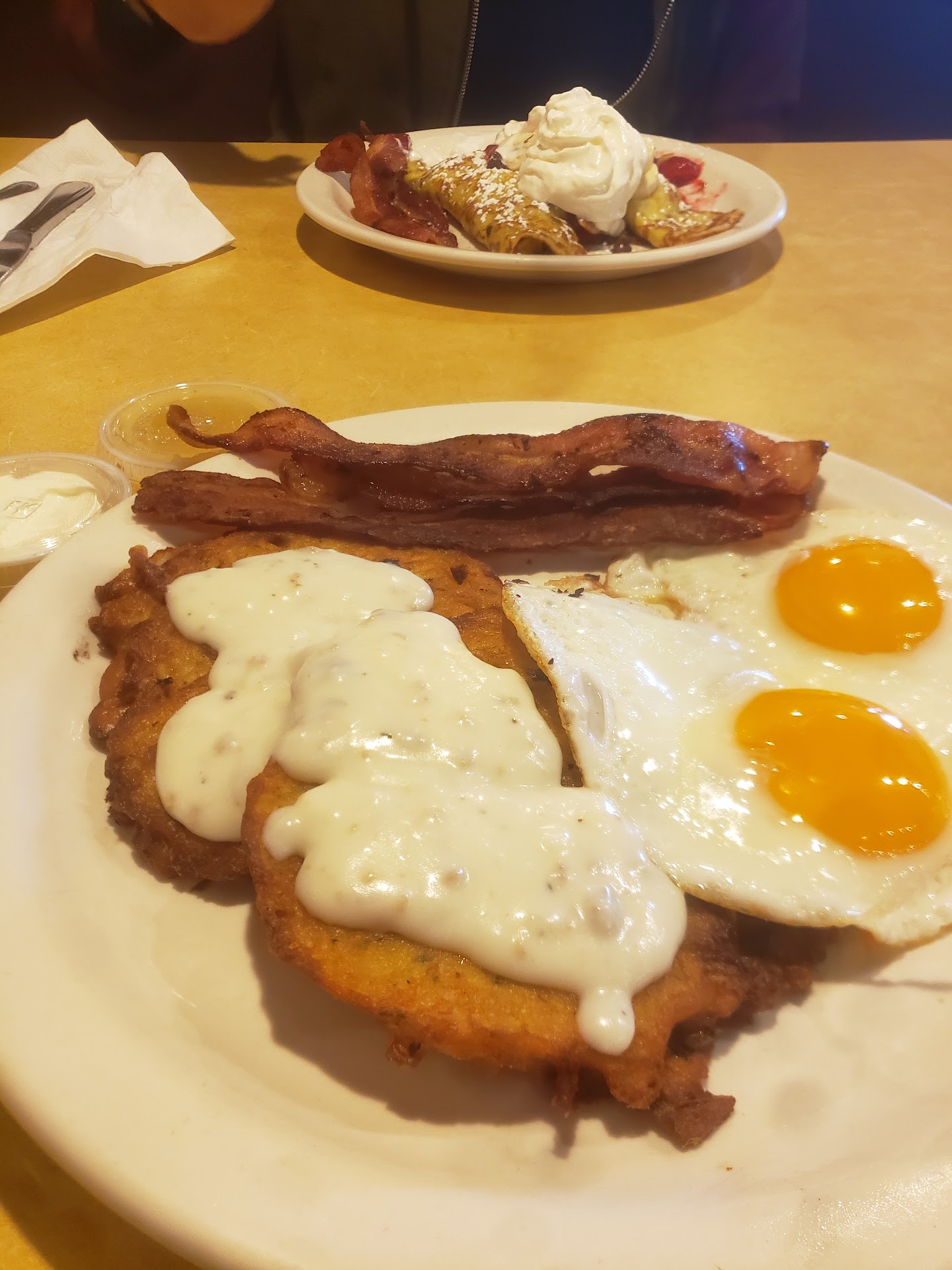 Read moreI never, ever leave reviews, but I had to for this place. â˘Restaurant was clean and nice atmosphere. Thatâs about the only positive thing I can bring from this review. â˘Country fried steak was not bad, just a little small. Lacked crispness, but tasted alright. â˘The benches are so uncomfortable we asked to move â˘The coffee was terrible, and not because they gave me the wrong coffee roast like they did. â˘The âextra crispyâ hash browns I ordered were about as crispy as apple sauce, not one single speck of seasoning were on them, and tasted so bland I didnât even eat them. â˘Service was spotty, just didnât feel much attention to detail was present. â˘They charge 4 dollars for coffee for each person and it was arguably the worst coffee Iâve ever had. Never seen a company charge for coffee for breakfast unless it was a latte/cappuccino/ect.