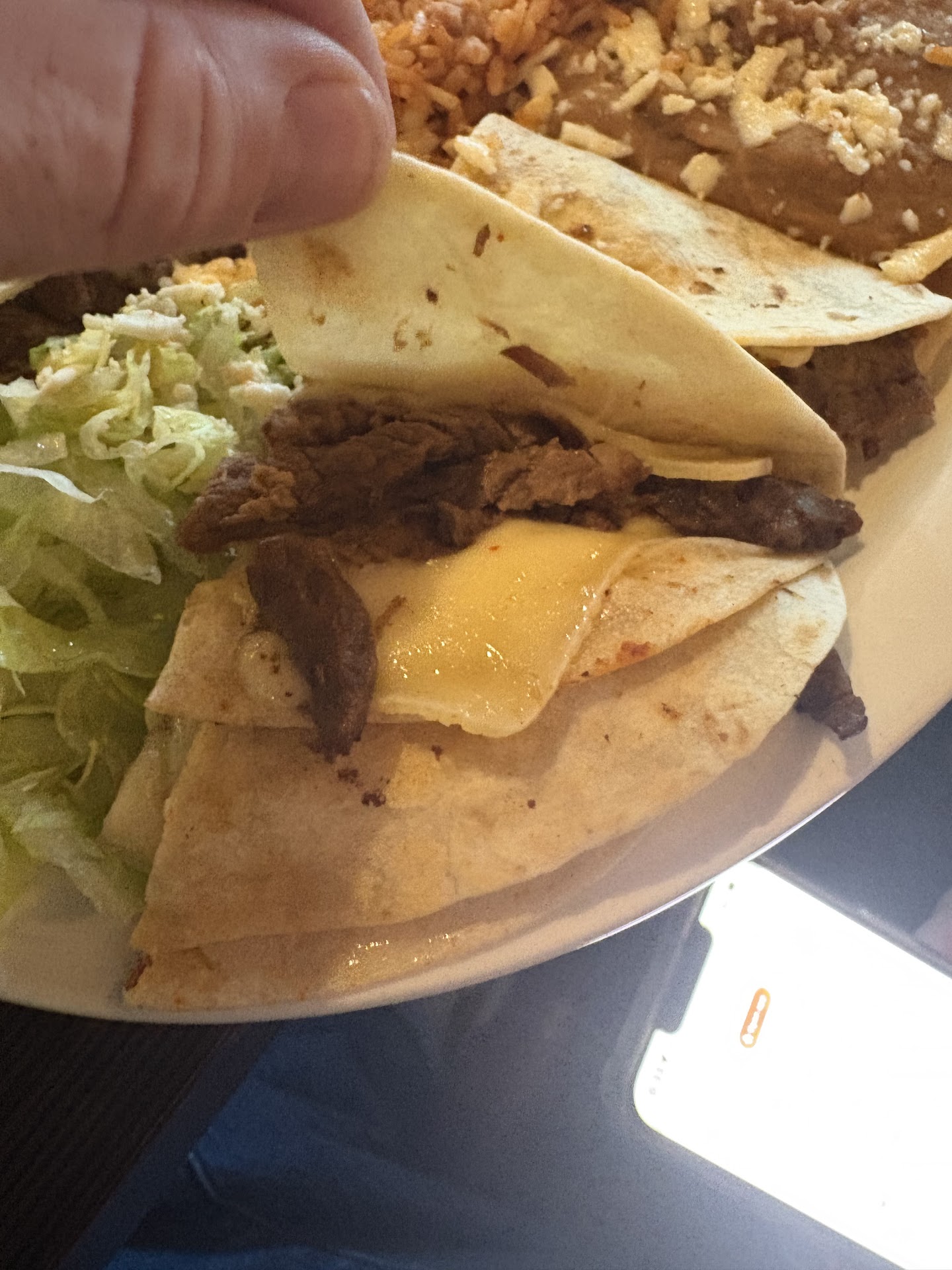 Read moreWe were seated right away. Chips and salsa came as we sat. Had to wait for the server to appear and give a table their check and check on another table. Before asking what we would like to drink. With me choking on the chips and salsa (hot). Asking for water. We then waited 7 minutes for him to return after bring our drinks just to take our order. Knowing what we ordered for our entree. I wanted my plain with a side of cheese sauce. We ordered an appetizer combo. Wish I knew that the quesadillas came with pico and cheese. I sent my food back. Only to have them scrap off the toppings then put on grill. There was still some topping left on my food. Plus my rice was cold. The server came back told me I didnt order what I knew I ordered. Dared to argue. I only order a few items from a Mexican restaurant. Had to ask for more to drink. By the time my food came back. The side of beans was cold. This is not a good first experience. Thankfully, we...