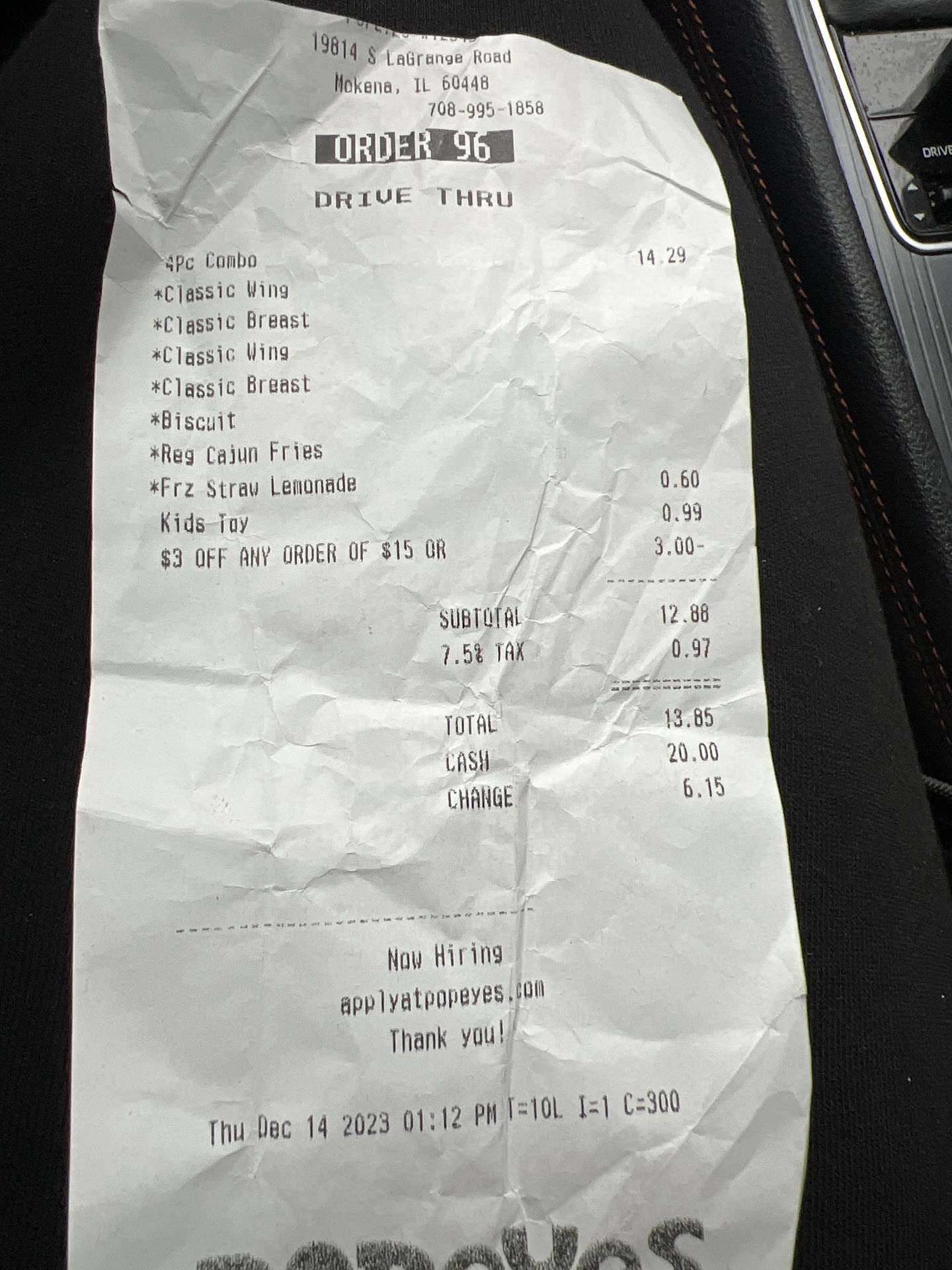 It’s very disappointing that me and my family have been going to our Neighborhood Popeyes for the last 5years and have Never had any issues up until now. I guess they’re under new management but unfortunately they need to bring back the Old management because the Old management and all the Staff was extremely friendly, And they went above and beyond for their customer’s… The food was great! The facility was clean! Never had a problem until Now. Now it’s going downhill and they are compromising their customers safety by not following proper protocol with preparing and cooking the food thoroughly through! More importantly the food has went downhill to the point it’s making people sick!!!!!! I just spoke to the store manager name Martha at the Location in Mokena, IL At 11:42AM on 12/17/2023. The manager ended up being extremely rude and unreasonable very Hostile!!!! Martha who claims she’s the store manager, was trying to explain to me what the protocol is but when I’m verbally telling you that I have the receipt and I’m telling you that I actually ended up taking pictures of the chicken after the fact, And I have proof of me taking the children to the emergency room under 24 hours due to them having severe symptoms of diarrhea and constant Vomiting! Mind you at the time when they were eating the chicken, It was unknown to anyone that the chicken was not completely done until when you get to the actual bone portion and you see blood at that point majority of all the chicken is already ate and consumed and when I tried to explain that to her , she said that doesn’t matter once you eat the chicken, you keep the chicken and you cannot receive a refund at all…..That’s where the argument started because that makes zero sense to me me being in the customer service industry I always like to listen to the actual customer in their entirety And let them explain to me what exactly happened and as long as they have their receipt or their evidence I don’t mind returning their money back because it’s common sense, especially when it’s such a small amount of money. It’s a no-brainer rather than you have a lawsuit against your whole establishment due to you not preparing chicken properly, and thoroughly cooked all the way through… I’m explaining to you I have documentation where I had to take my children to the emergency room and it’s been documented that they had food poisoning. I even showed the doctor the picture of the chicken and he stated for sure that the chicken was not completely cooked thoroughly through but Martha wants to argue with me back-and-forth….I could’ve simply either emailed her all my evidence or I could’ve came in person and showed her the evidence. Martha is being extremely unreasonable and all I wanted was my money back, which was all of $15! Of course I’m not going to want you to re-prepare the chicken when my children already got sick the first time from chicken not being cooked thoroughly. Mind you my son is still sick right now with vomiting...