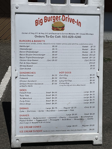 Family owned and operated Big Burger is a staple of Molalla, it has been around for decades and provides their unique hamburgers which are reminisce of 50's diners. The bacon cheeseburger is a winner, along with shakes and soft serve ice cream. They are located on the NW corner of highways 213 and 211, and they have a drive thru with entrance on the NW side of hwy. 211 next to a house behind Big Burger. Just a heads up- you will exit with only the option of turning right onto Hwy. 213 (south bound) but there is a safeway shopping center with entrances and exits on the east side of 211 and NE side of 213 so there are ways of getting back on the road northbound if the other 3 options don't work for you. There is a small dining area inside with a few tables, or you could dine outside with a couple of picnic tables under their covered patio. Parking is limited and the drive thru is a little slower than corporate fast food establishments, however this hole in the wall burger joint is popular because of the food, not the amenities. One of our favorite stops when driving thru Molalla, highly...