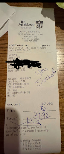 Read moreI wish I could take stars away, I would get it a negative 5. We were at Applebee's on October 17th. Myself my mother and son (for his birthday). The waitress was nice but we were seated at least 15-20 mins before other guest that were seated around our table. ALL of the other tables got there food before we did, even our appetizer! Then 10-15 mins after our appetizer came to us, our entrees came out. My son ordered a steak meal and my mother and I had the chicken and shrimp meal. My son's steak was NOT EVEN WARM ! There was no heat to the steak at all When the waitress brought our chicken meals, the bottom of one of the platters had mashed potatoes on the bottom and it smeared across the table. At that point, I asked for a supervisor. When Arthur, the manager, came to our table to talk to us, he was VERY UNPROFESSIONAL AND RUDE ! He told me that he was going to pay for the meal. After saying that, he processes to tell us "You can leave now !" He starts to raise his voice. Any paying customer would be upset if they waited 20 mins just for an appetizer ONLY AFTER OTHER CUSTOMERS THAT COME IN GET THEIR MAIN COURSE BEFORE WE EVEN GET OUR APPETIZER! Then for the person trained to represent your company acts more unprofessional then the person he trained. I WOULD NOT RECOMMEND NOR WILL I VISIT THIS PARTICULAR LOCATION EVER AGAIN !! Arthur needs to take customer service training and sensitivity training. Or...