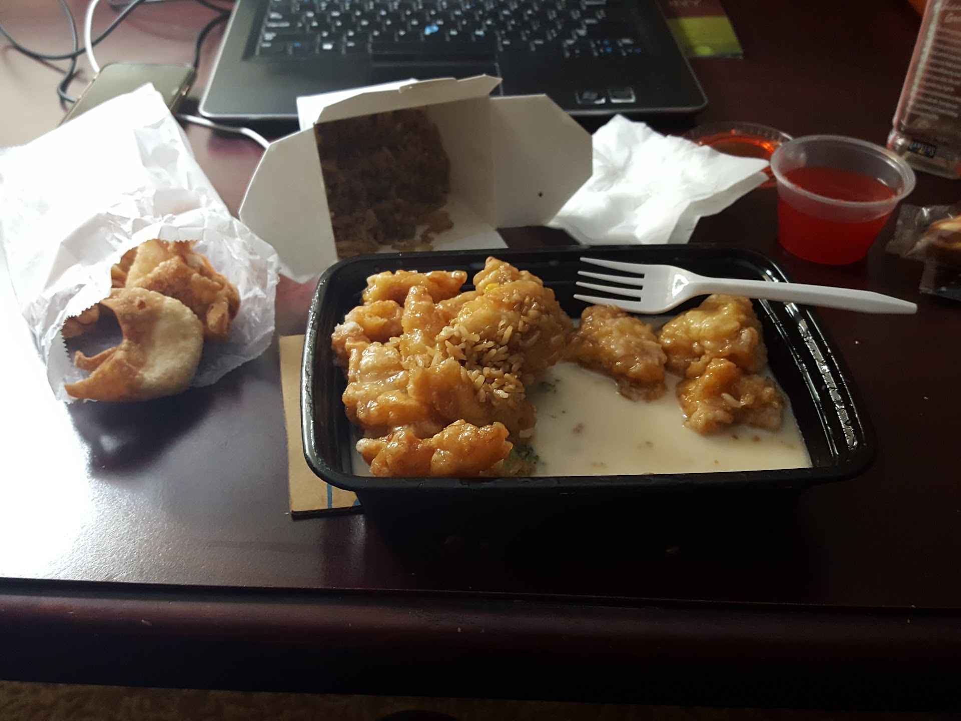 They have a large and diverse menu. Today we had the somewhat larger combination meal for about $7.89. That meal comes with more of the entree, along with fried rice and an egg roll ( again we substituted the Lo Mein for an additional 85 cents). This mid-sized option was perfect because we each ate our fill and took about 1/3 of our meal home. An even larger portion (1 quart of entree along with white rice and no egg roll) is available for about $2.00 more.