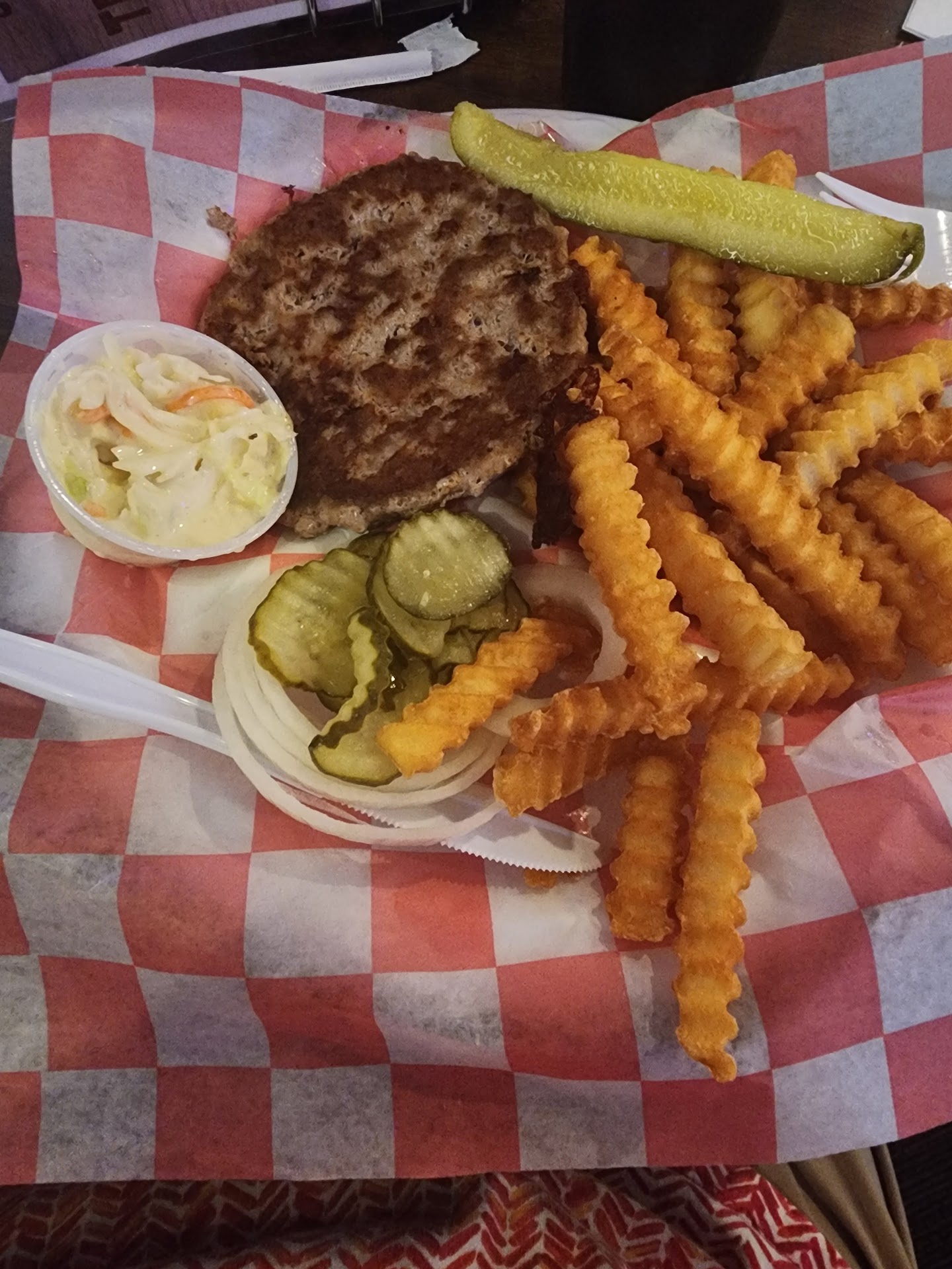Read moreThe atmosphere is laid back and not noisy even when full. Most places are quite loud because of the open/high ceilings. Even though that is stylish it allows for more noise. The wait staff are always friendly and make sure you have everything you need. My favorite dish is the cheeseburger basket. I think it has the best burgers in town and the coleslaw is nice and creamy not made with vinegar. The portions are plentiful and yummy. Some areas need a little updating but overall not much since you don't want to lose the old time quaint character. It's a great place to eat and not feel rushed in the process. Thanks...